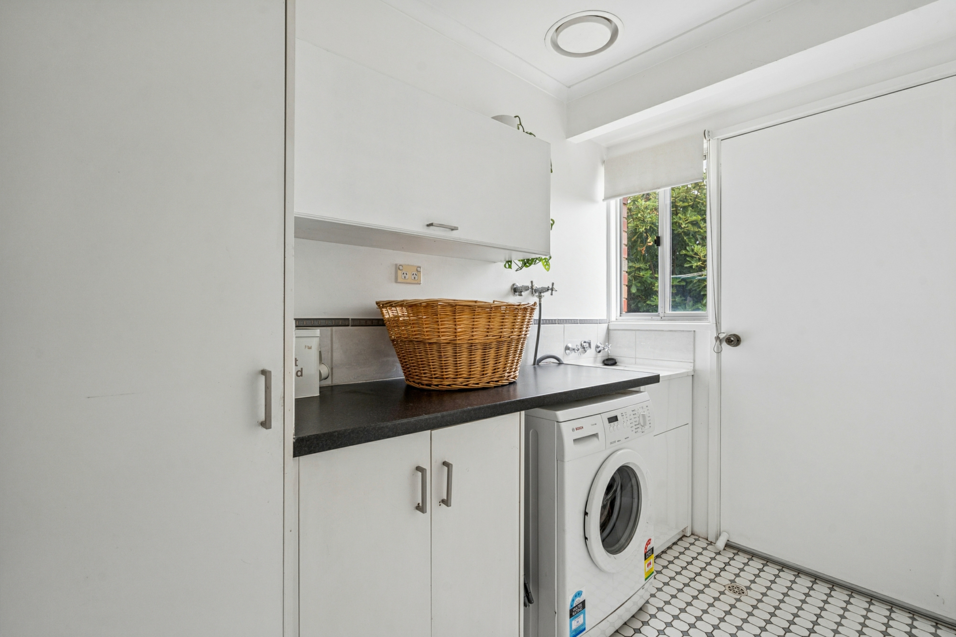 - Laundry with benchtop, storage space, and external access