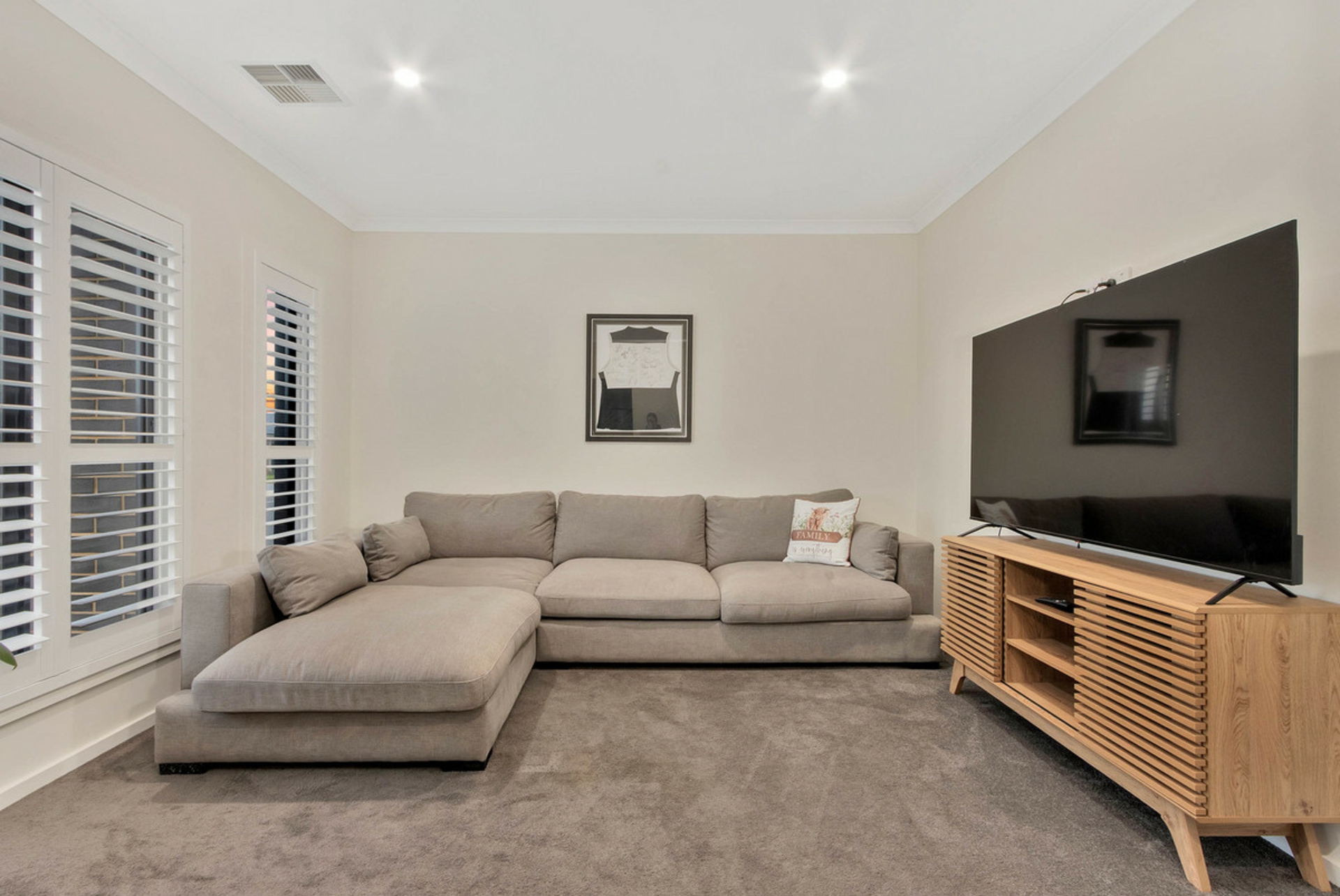 • Spacious lounge room with plantation shutters.