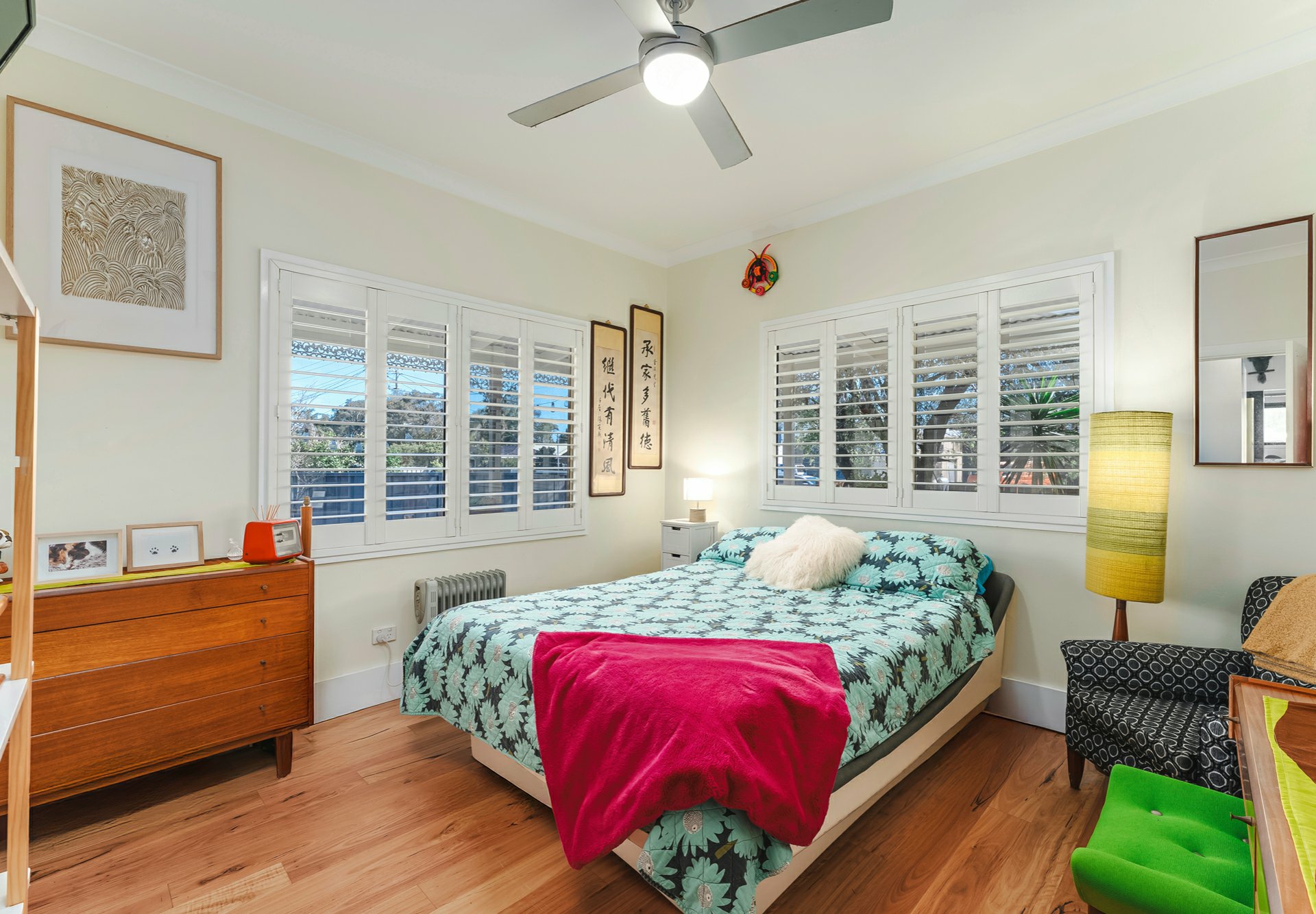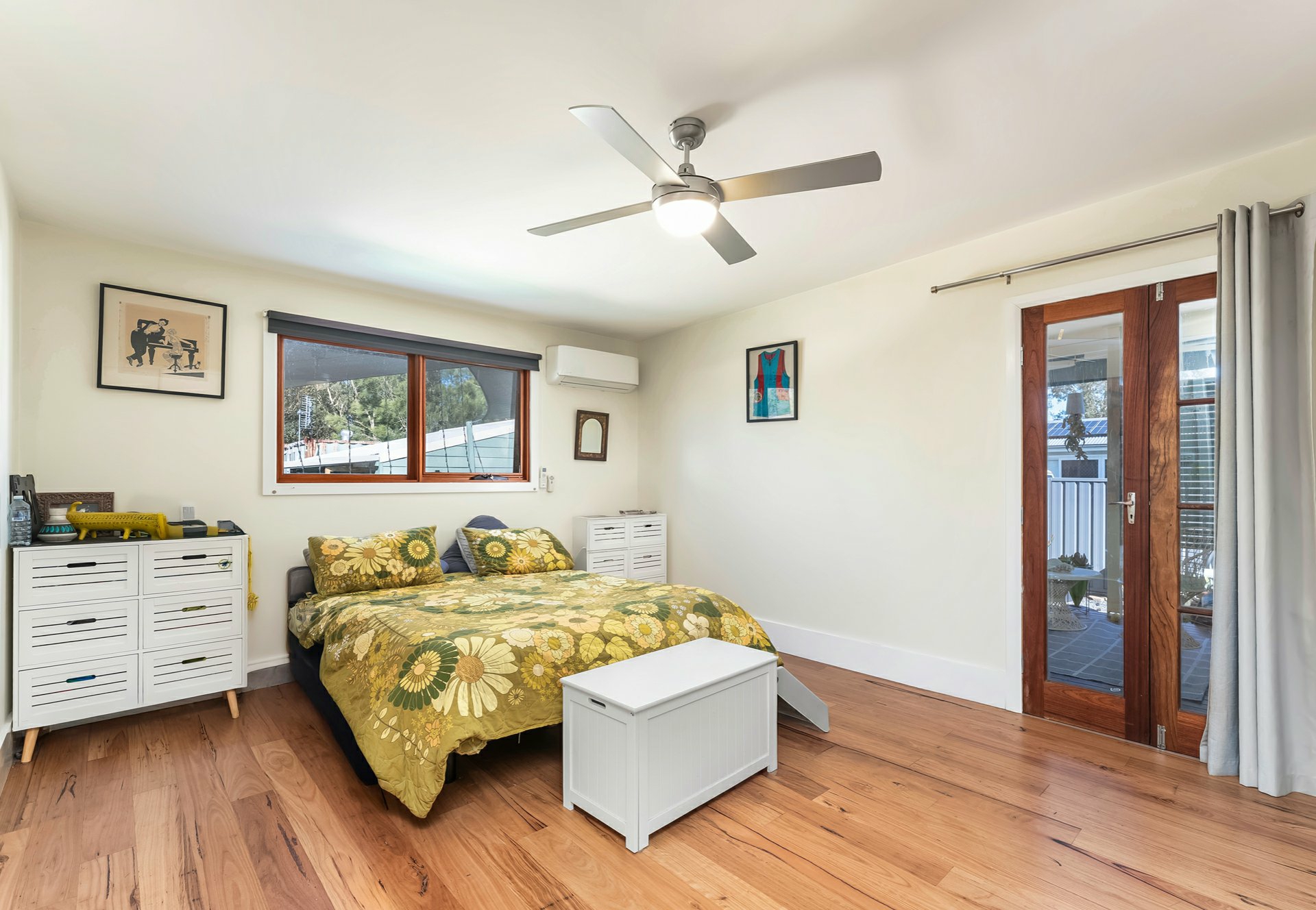 Inside, warm timber floors, plantation shutters and an airy open plan living/dining zone set the tone. The sleek white kitchen features stone benches, breakfast island and great storage. Three bedrooms include an oversized main with French doors to the deck, and there are two stylish bathrooms - one with a freestanding tub and rain shower. Year round comfort comes via split system air conditioning and ceiling fans.