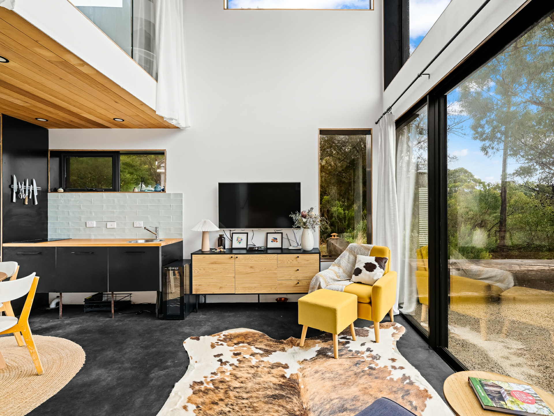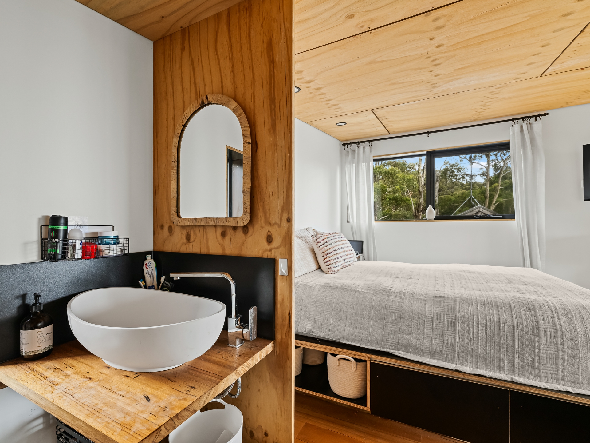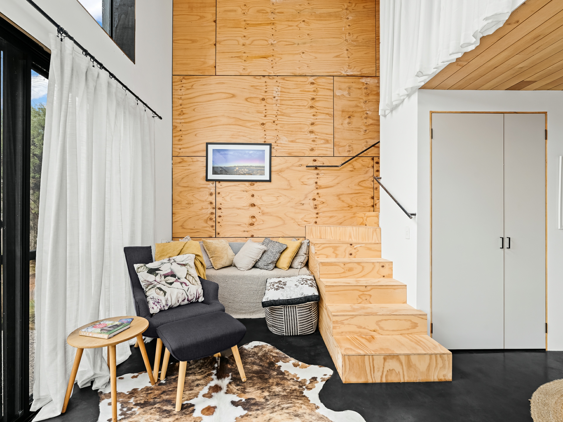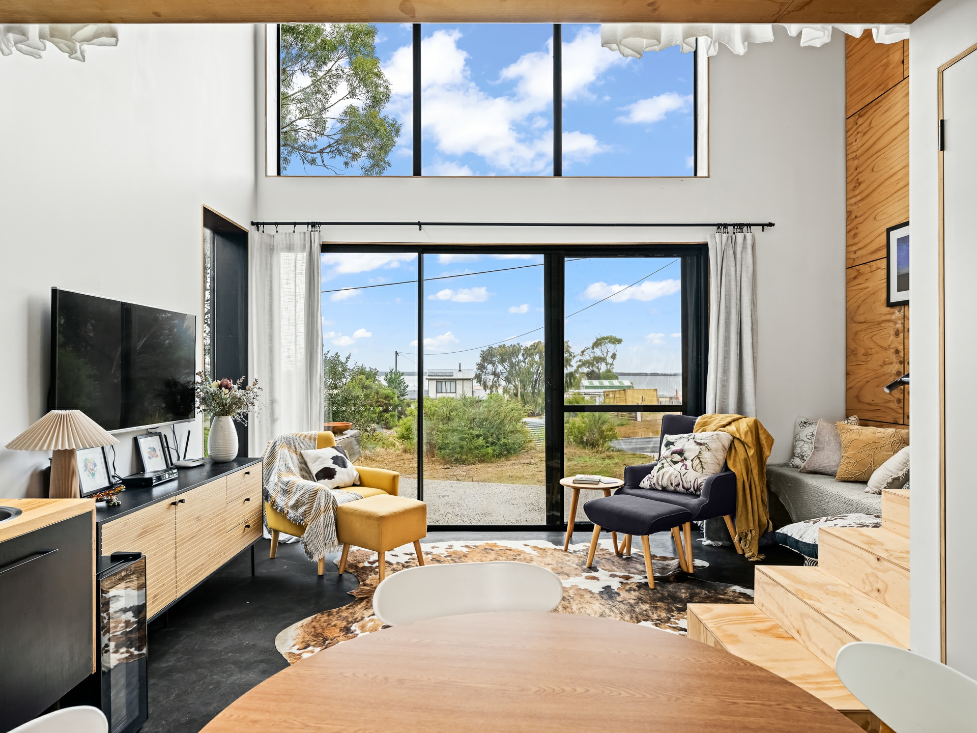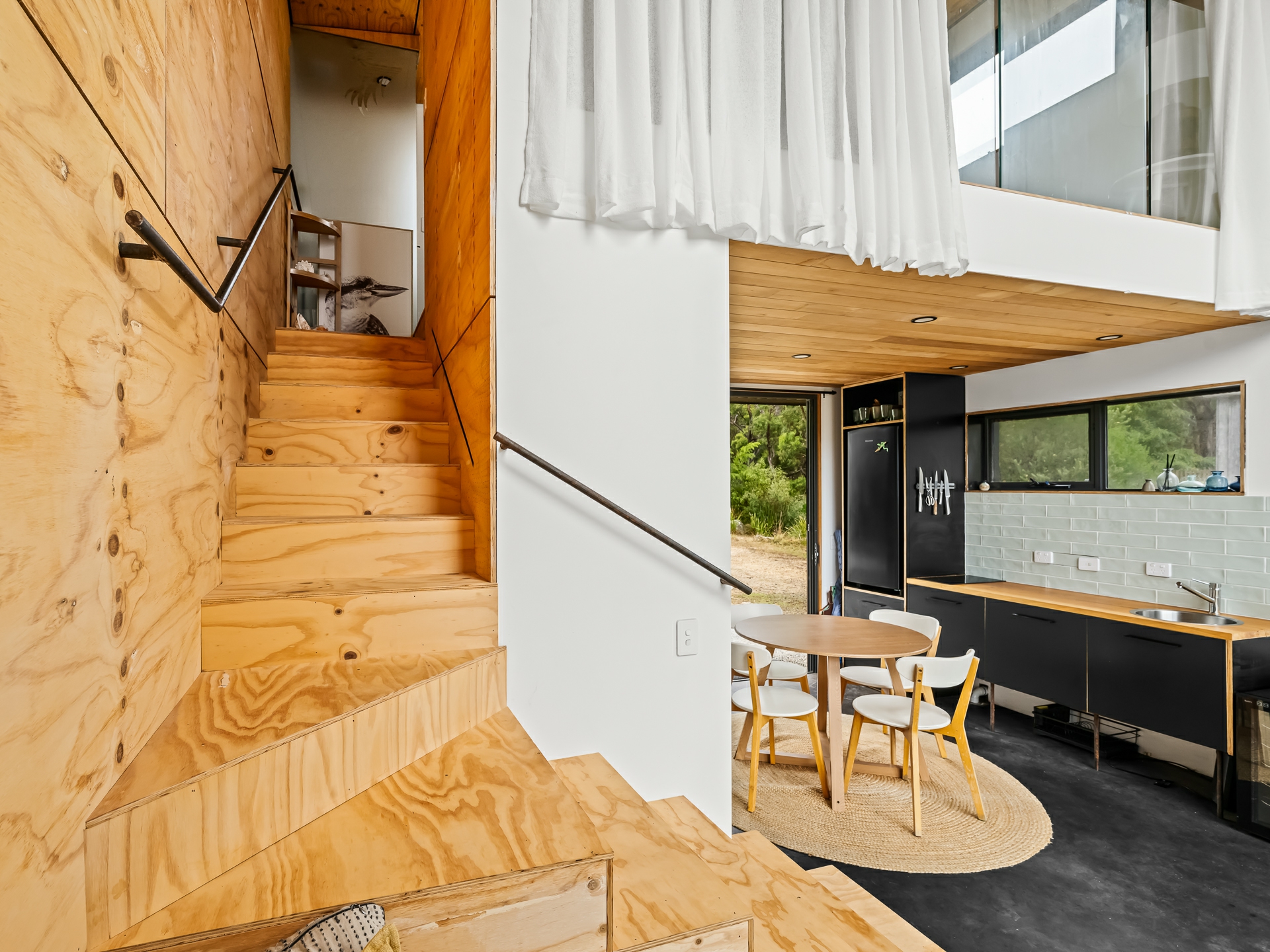 The cleverly designed "shack" is a standout, showcasing innovative storage solutions and a refined use of materials to ensure every inch is utilised with purpose. Clean lines and a considered layout create a seamless blend of style and practicality. The bedroom is perfectly positioned to capture stunning ocean views, offering a tranquil space to unwind, while expansive floor-to-ceiling glazing welcomes in an abundance of natural light. Designed with comfort in mind, the home captures the warmth of the winter sun, enhancing liveability and energy efficiency throughout the year.