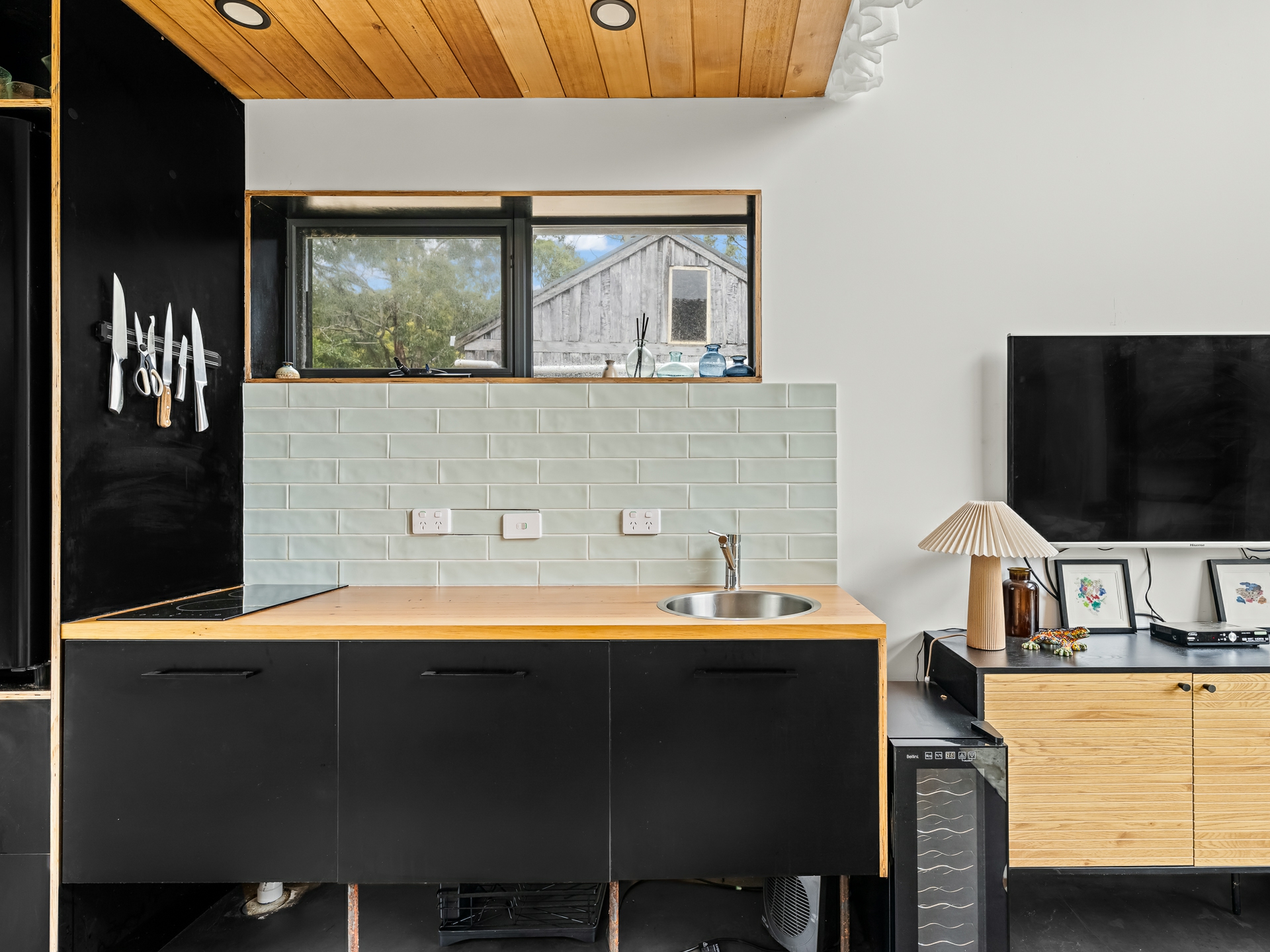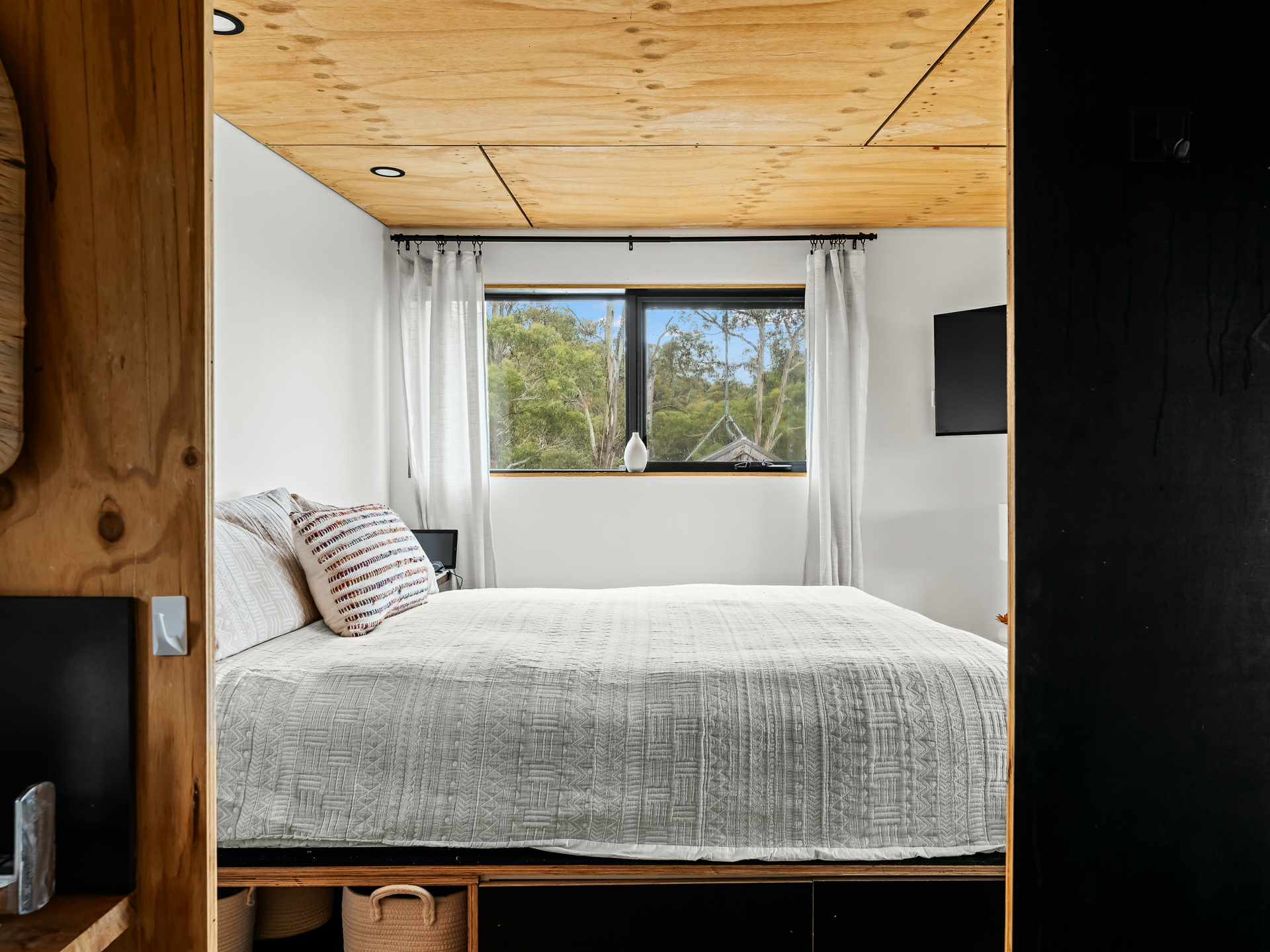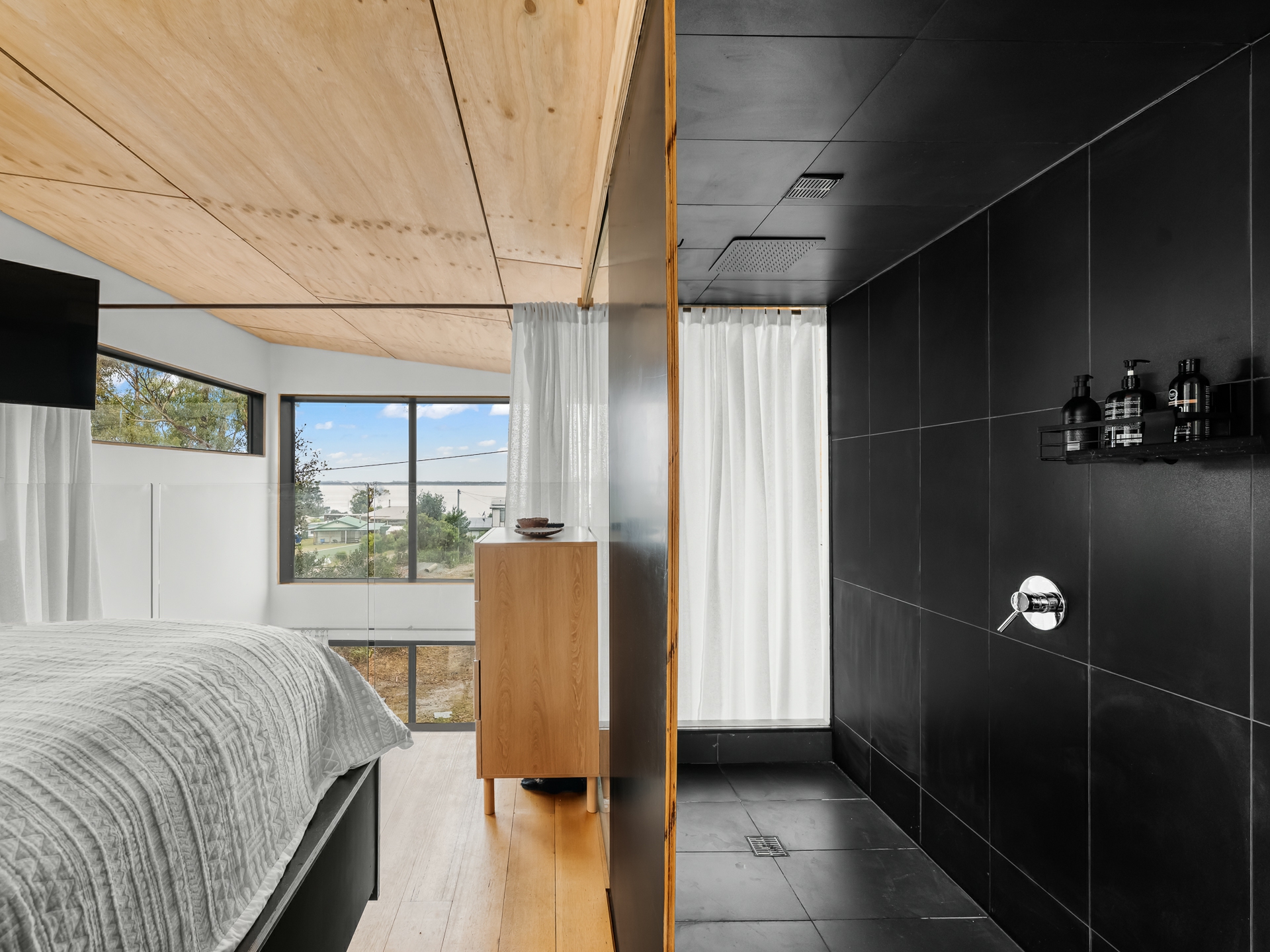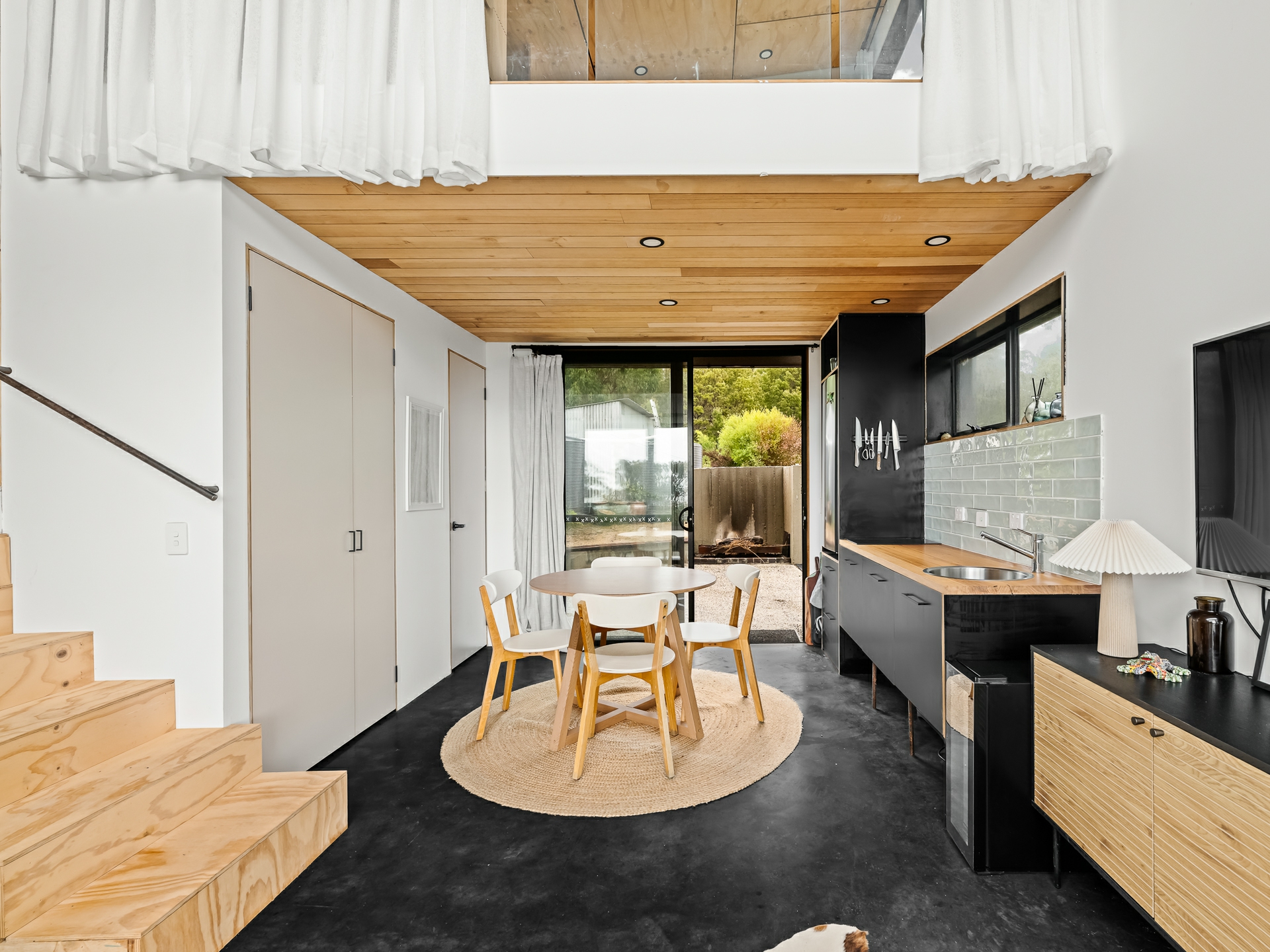 The cleverly designed "shack" is a standout, showcasing innovative storage solutions and a refined use of materials to ensure every inch is utilised with purpose. Clean lines and a considered layout create a seamless blend of style and practicality. The bedroom is perfectly positioned to capture stunning ocean views, offering a tranquil space to unwind, while expansive floor-to-ceiling glazing welcomes in an abundance of natural light. Designed with comfort in mind, the home captures the warmth of the winter sun, enhancing liveability and energy efficiency throughout the year.
