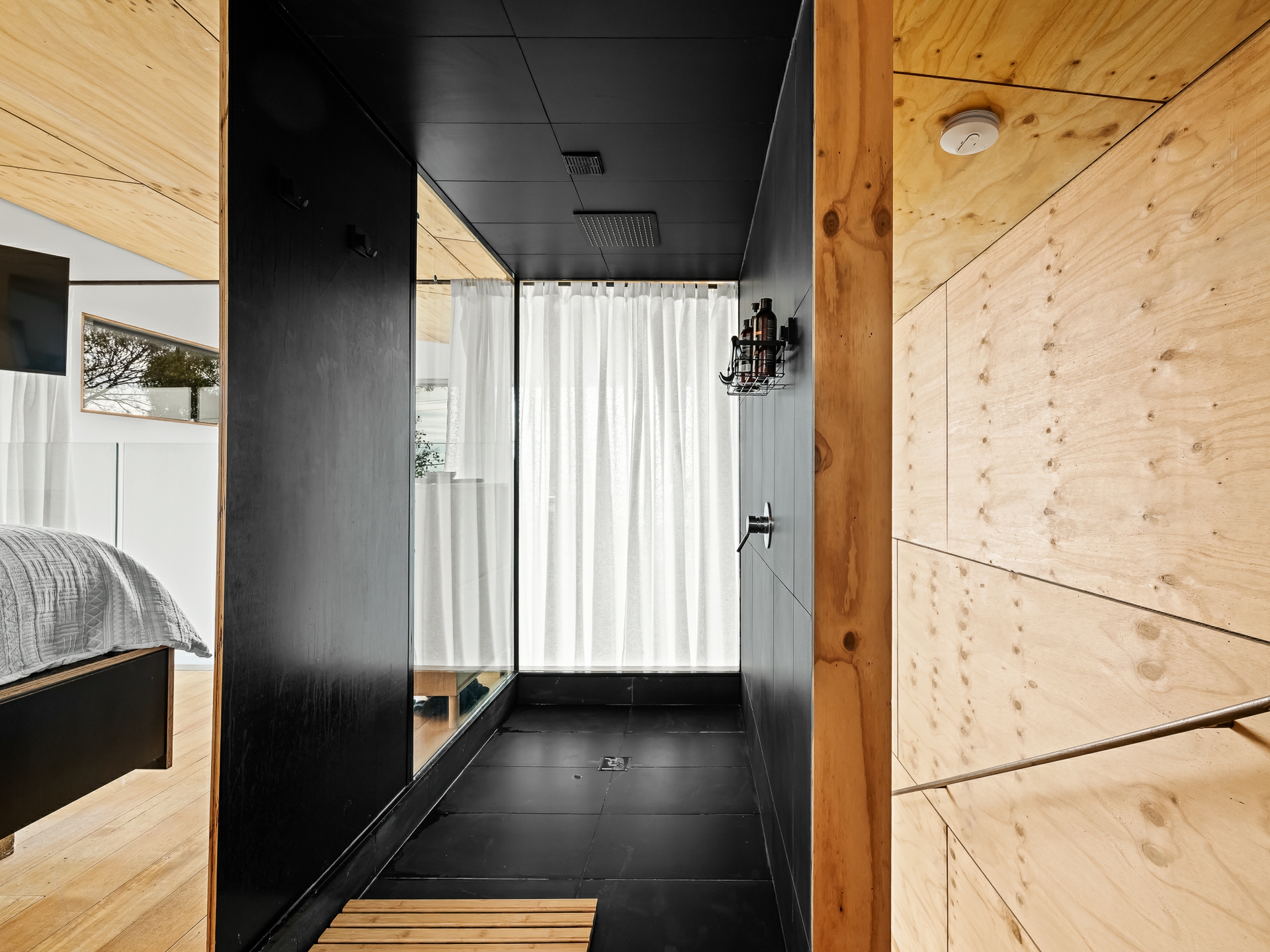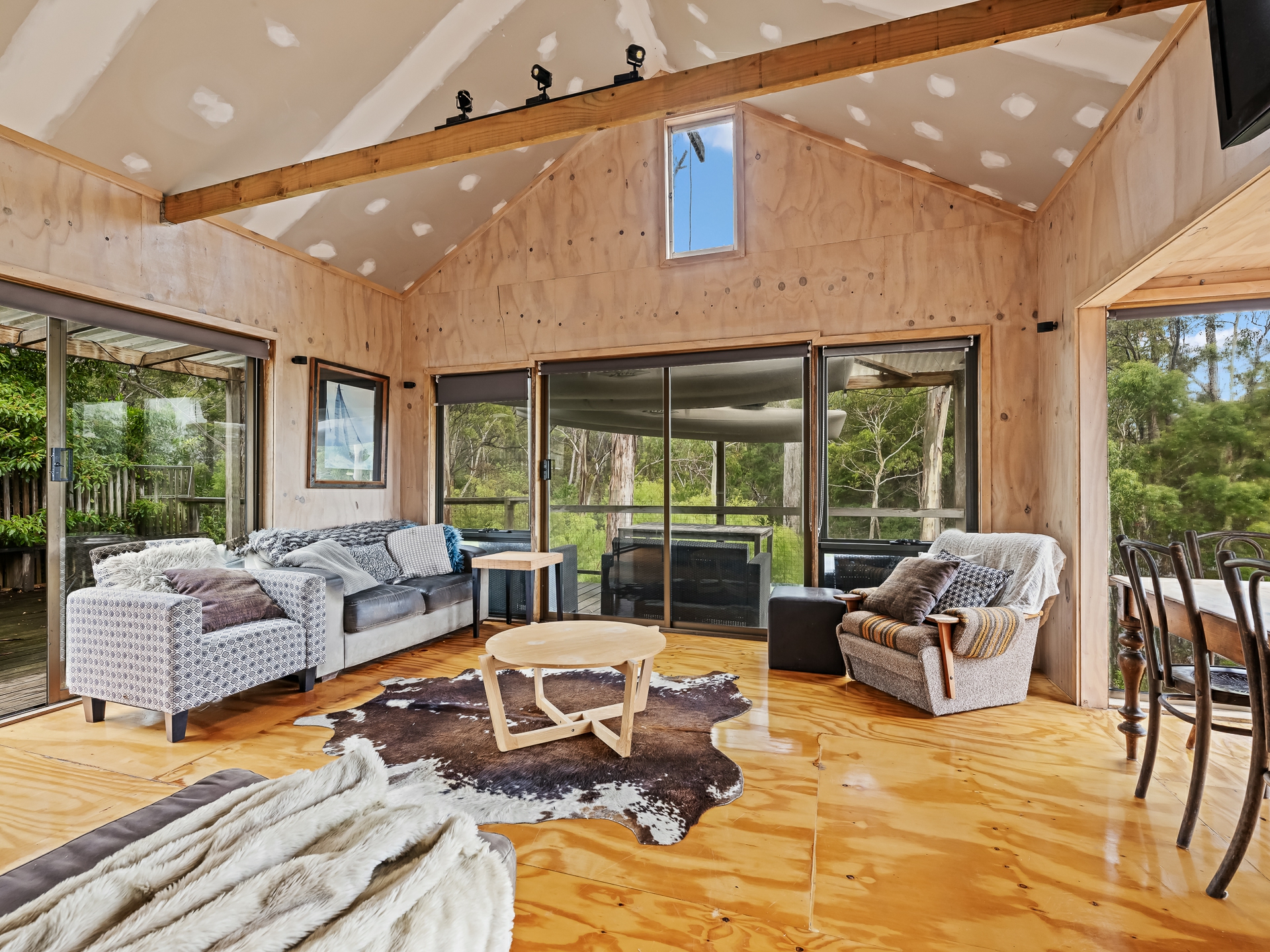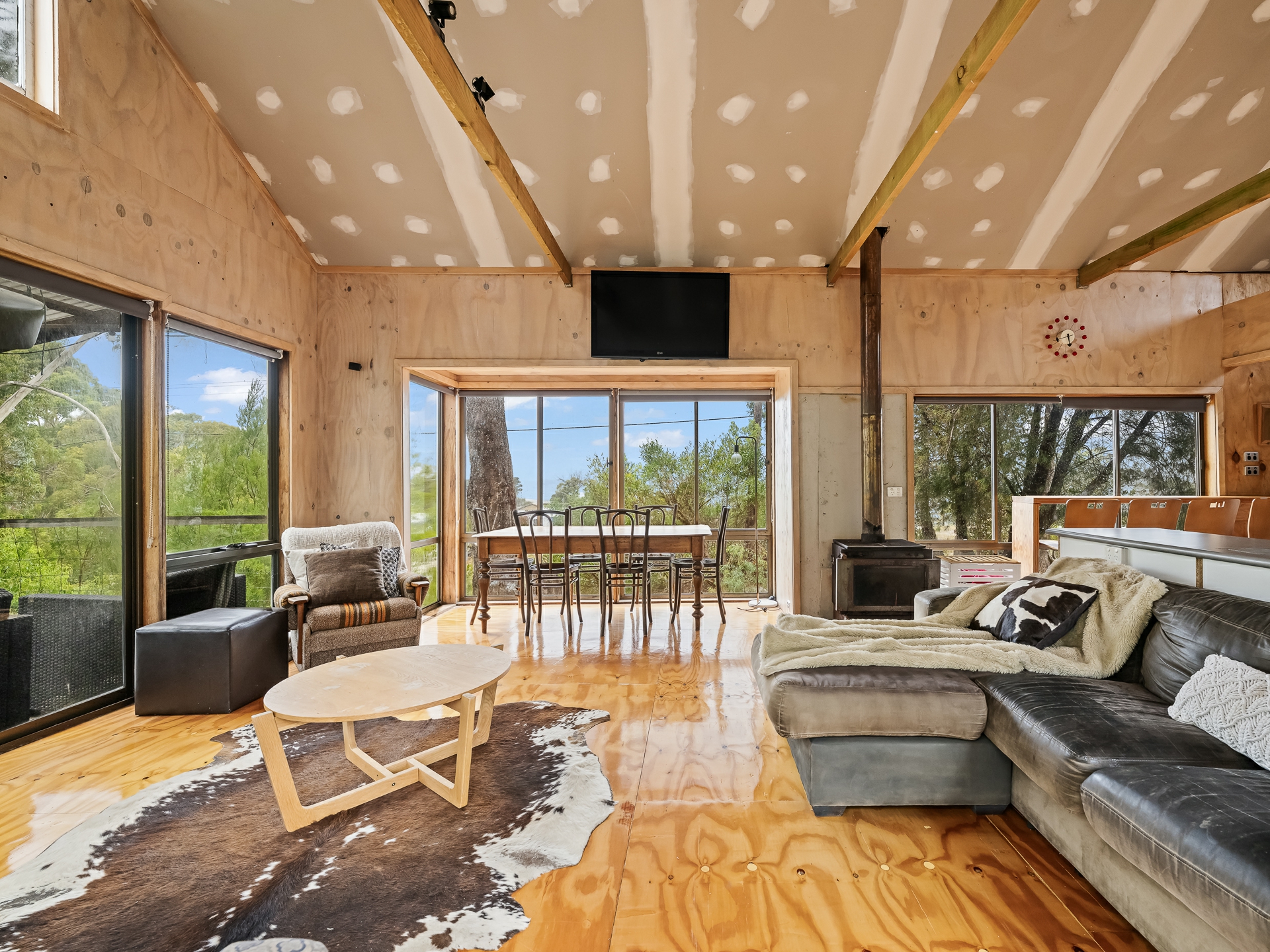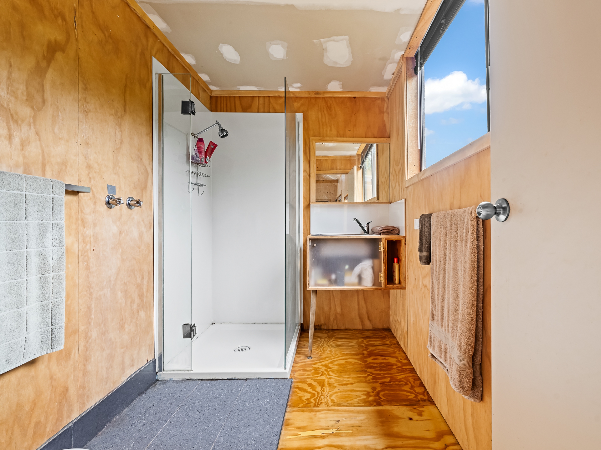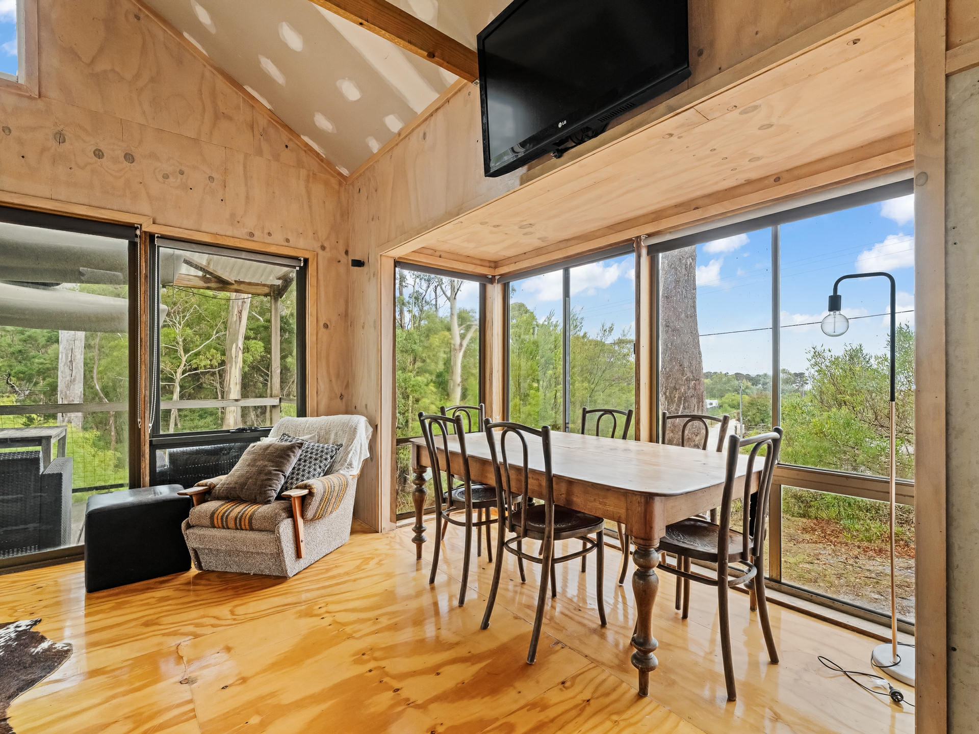 The cleverly designed "shack" is a standout, showcasing innovative storage solutions and a refined use of materials to ensure every inch is utilised with purpose. Clean lines and a considered layout create a seamless blend of style and practicality. The bedroom is perfectly positioned to capture stunning ocean views, offering a tranquil space to unwind, while expansive floor-to-ceiling glazing welcomes in an abundance of natural light. Designed with comfort in mind, the home captures the warmth of the winter sun, enhancing liveability and energy efficiency throughout the year.