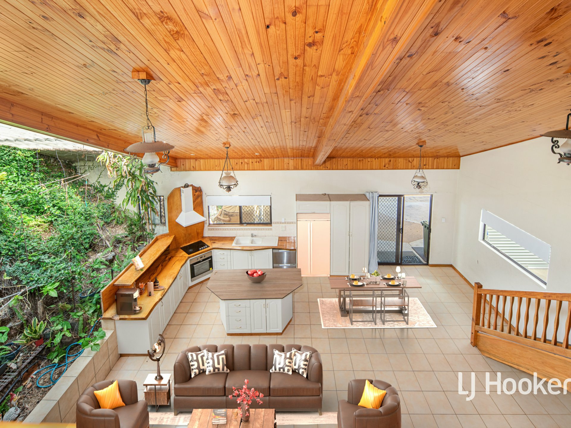 The living area is further enhanced by a stunning hand-carved timber bookshelf spanning an entire wall, adding warmth and character. The spacious corner kitchen features an island breakfast bar, electric cooking, dishwasher and pantry, with ample room for dining and entertaining.