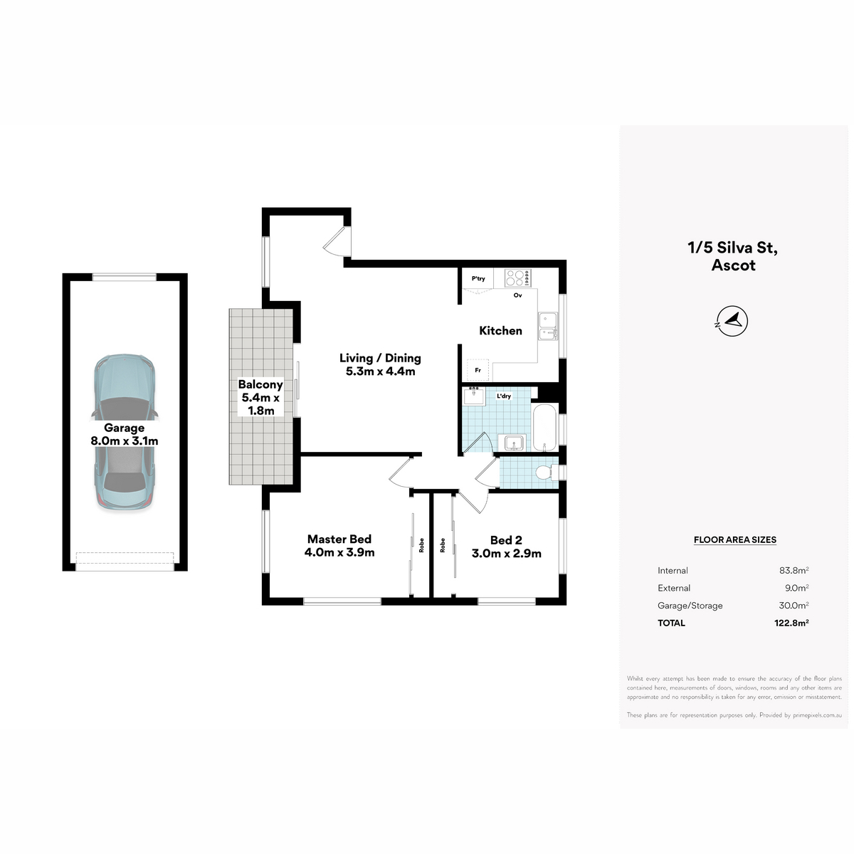 Both bedrooms include built-in wardrobes, while the primary bedroom features a split-system air-conditioner for year-round comfort. A breezy balcony at the rear creates a quiet retreat for relaxed mornings or easy entertaining.