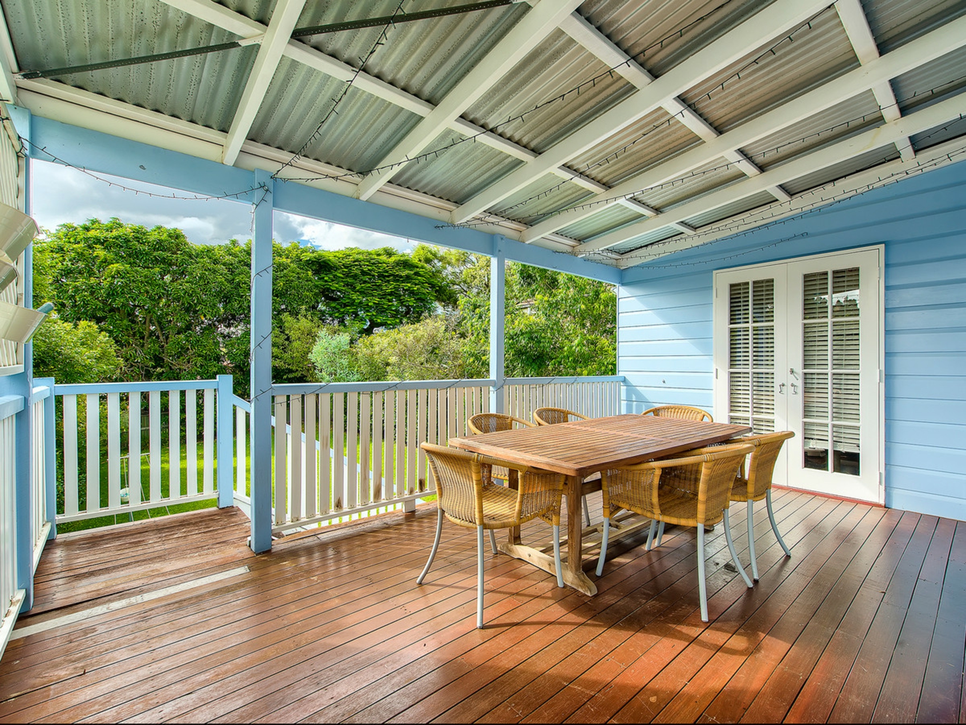 the bedroom at the rear having direct access to the deck via french doors.