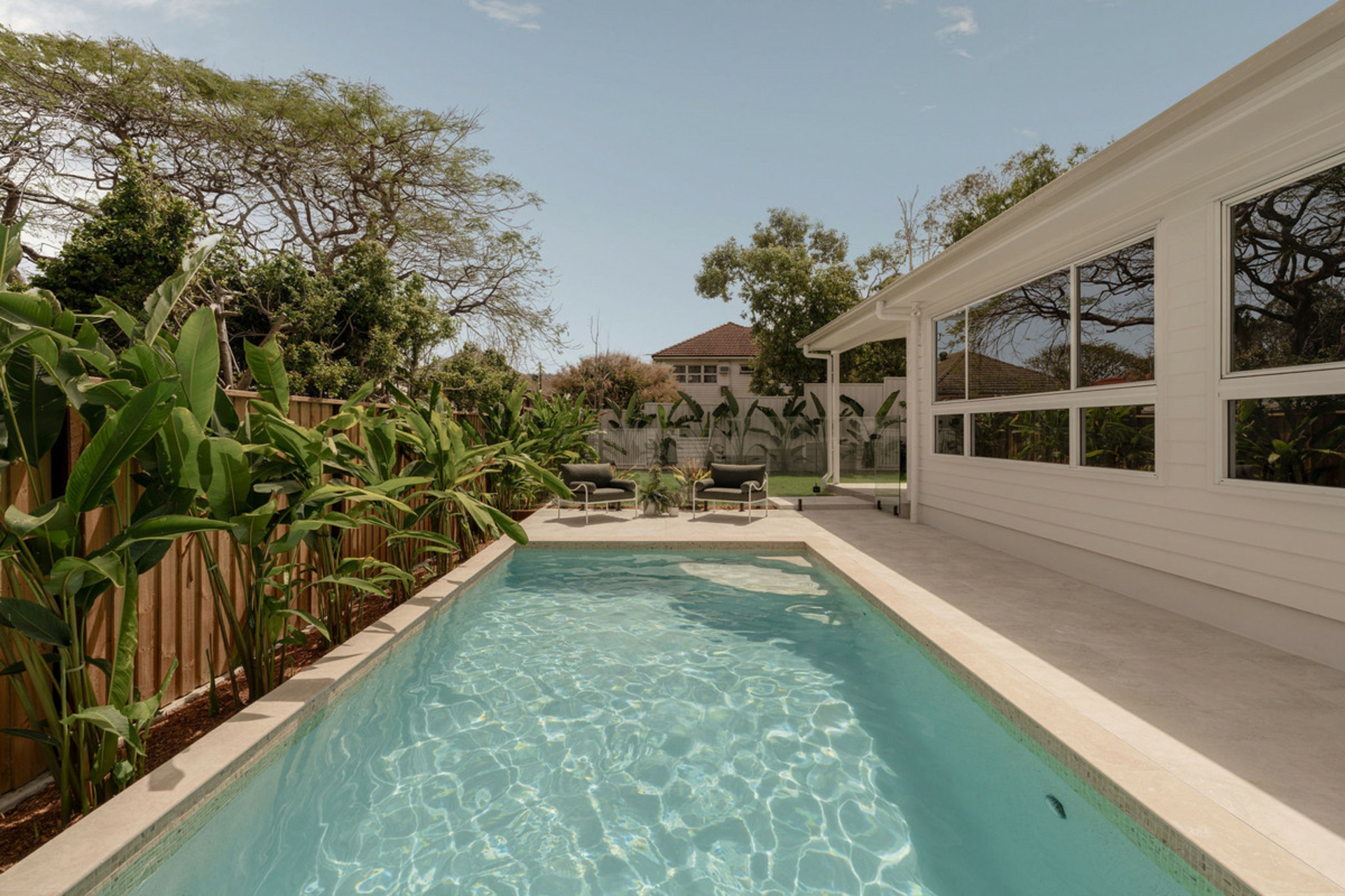 The facade is the first impression that begins to define the home. Sitting proudly at the crest of the street on a fully retained 607sqm block, the front yard accomplishes two goals: creating separation from your neighbours and a secondary outdoor space to enjoy. The backyard continues this sense of a lush outdoor haven. Established foliage frames this space, completed by a large mineral pool and tiled pool area.