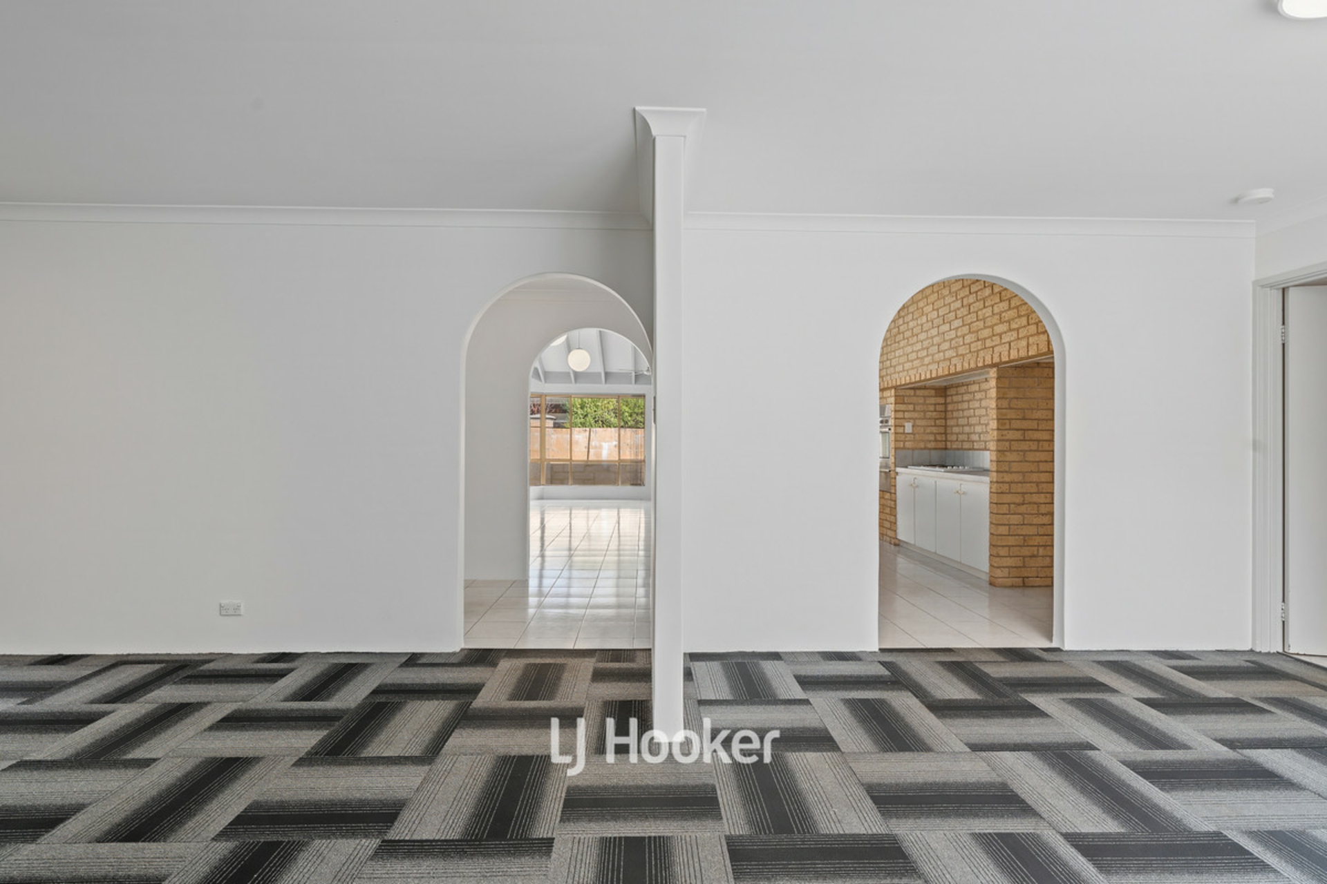 Step inside and be welcomed by high raking ceilings that create a sense of space and light in the open-plan living area. Stay cosy all year round with both a split system air conditioner and a feature fireplace, perfect for those cool winter nights. Enjoy multiple living zones with a separate lounge room, ideal for relaxing with a book or creating a private theatre space.