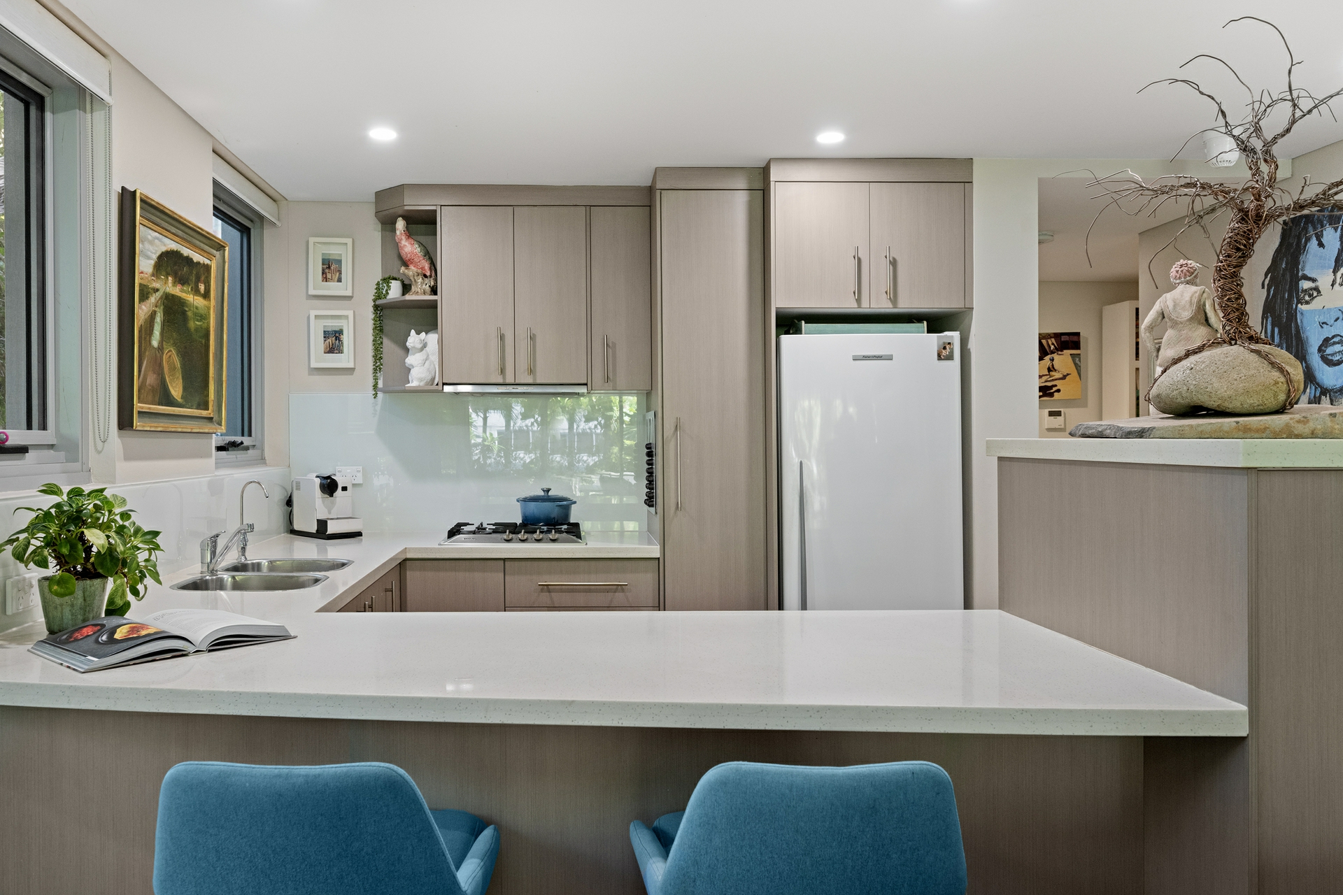 - Modern kitchen with gas cooktop, integrated dishwasher, breakfast bar and ample storage