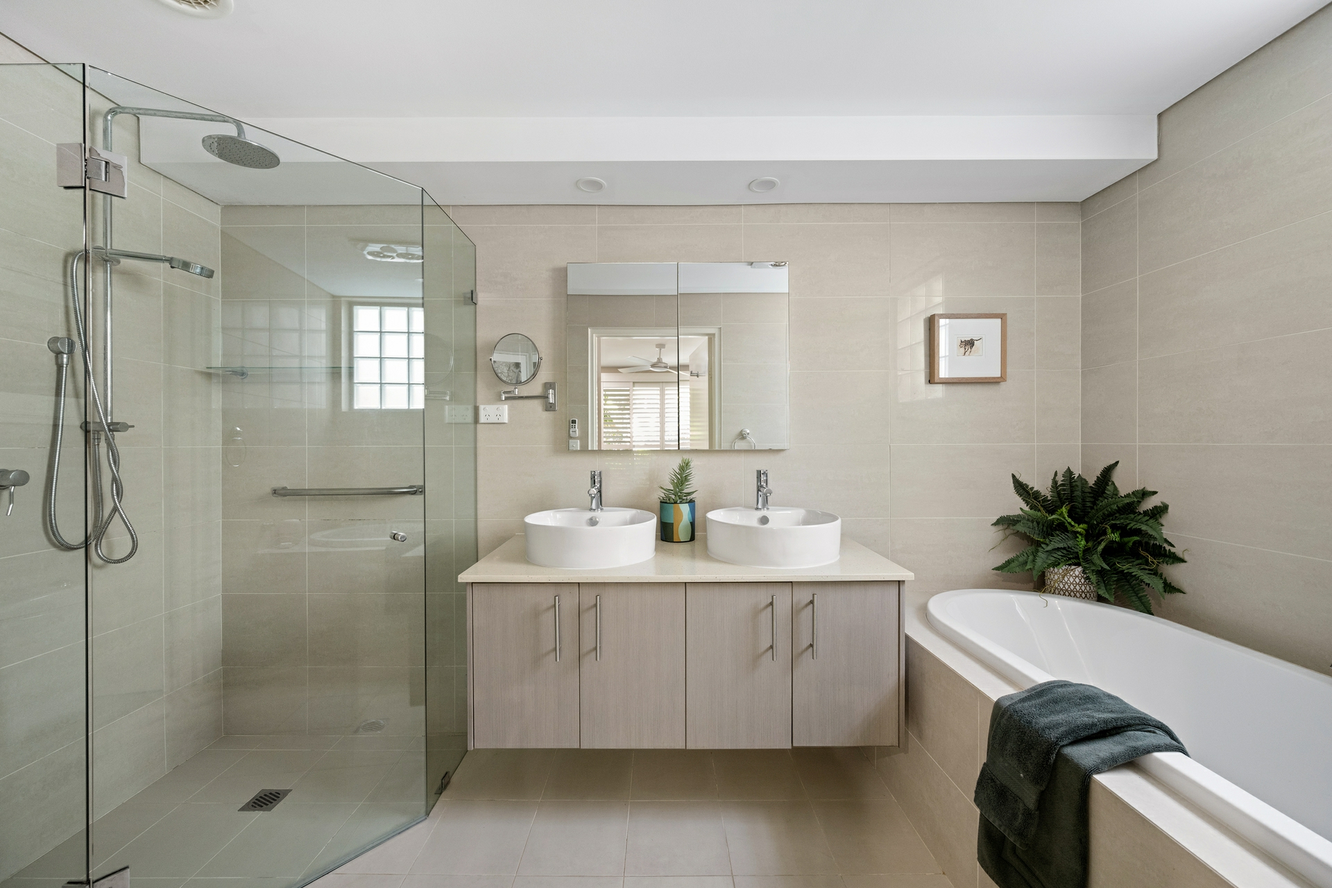 - Warm timber flooring and calming natural colour palette throughout