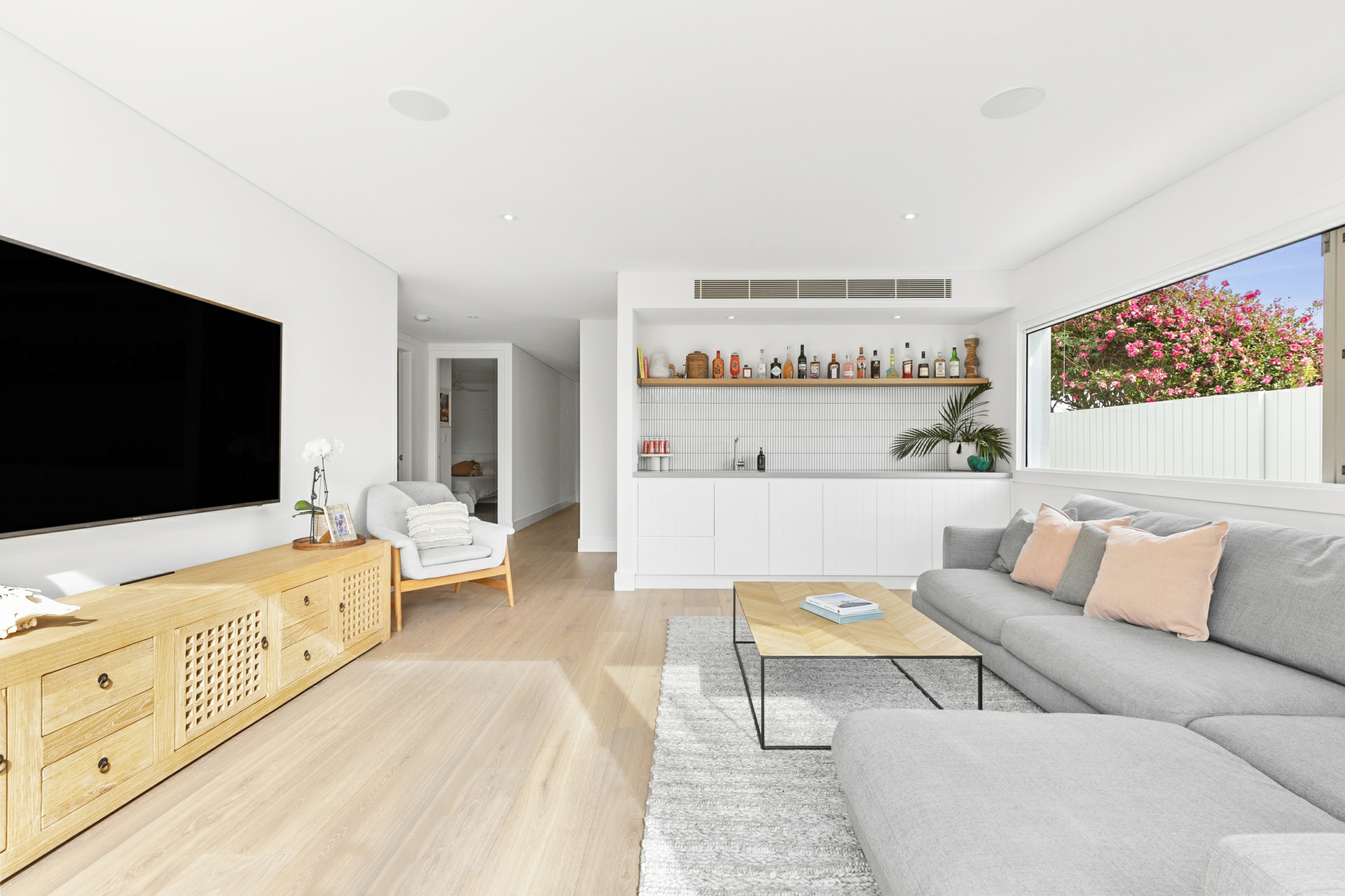Designed for sophisticated entertaining and effortless coastal living the home showcases numerous entertaining zones across two sun filled levels. Wide European oak floors run throughout the residence with heated tiled floors in the bathrooms and laundry.