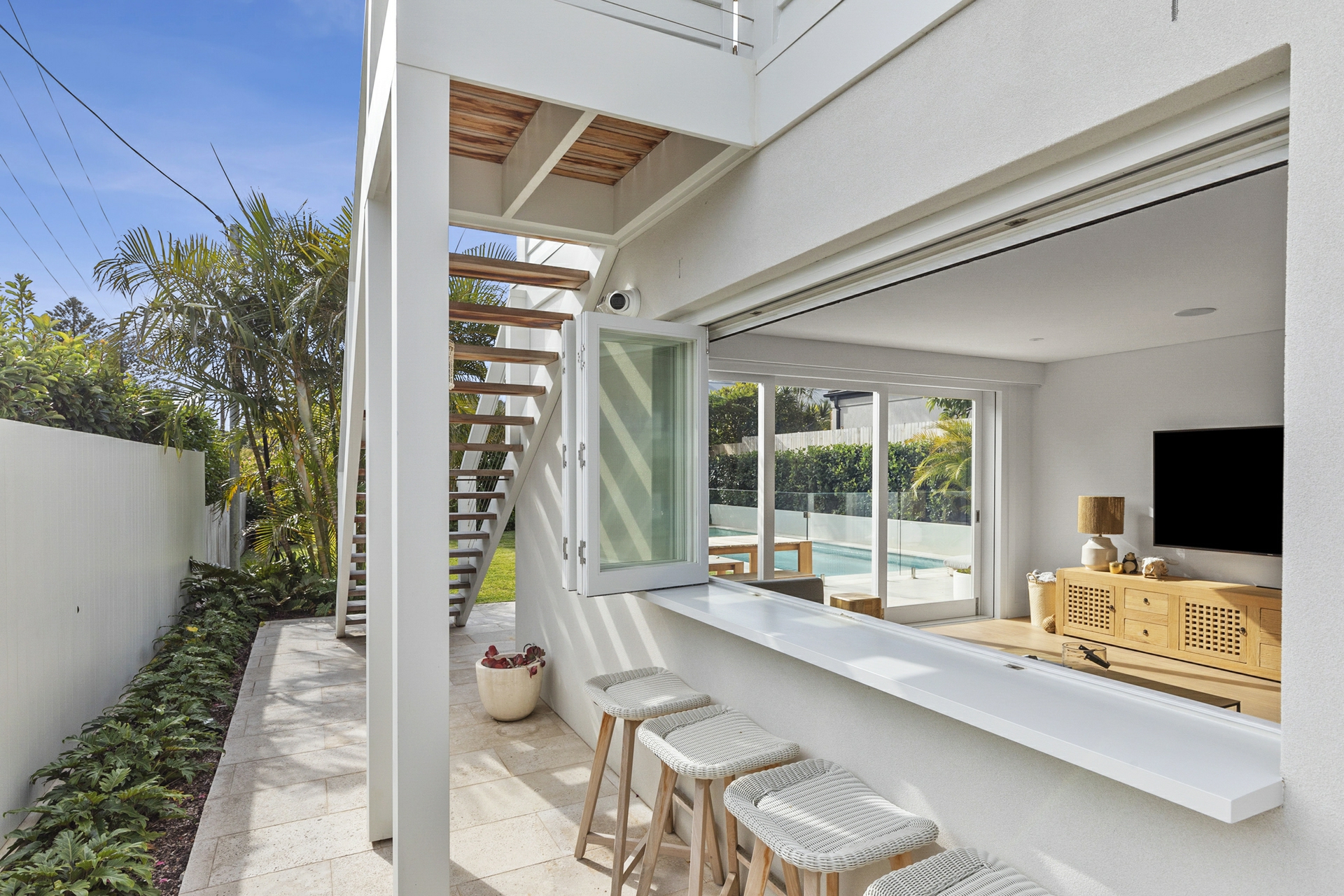 Smartphone-enabled technology includes keyless front door entry, security cameras, an integrated audio system, garden lighting, pool and heater controls, and individual room air conditioning-allowing you to manage the home remotely and ensure the perfect temperature on arrival.