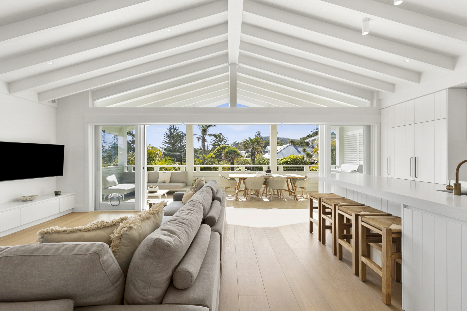 Designed for sophisticated entertaining and effortless coastal living the home showcases numerous entertaining zones across two sun filled levels. Wide European oak floors run throughout the residence with heated tiled floors in the bathrooms and laundry.