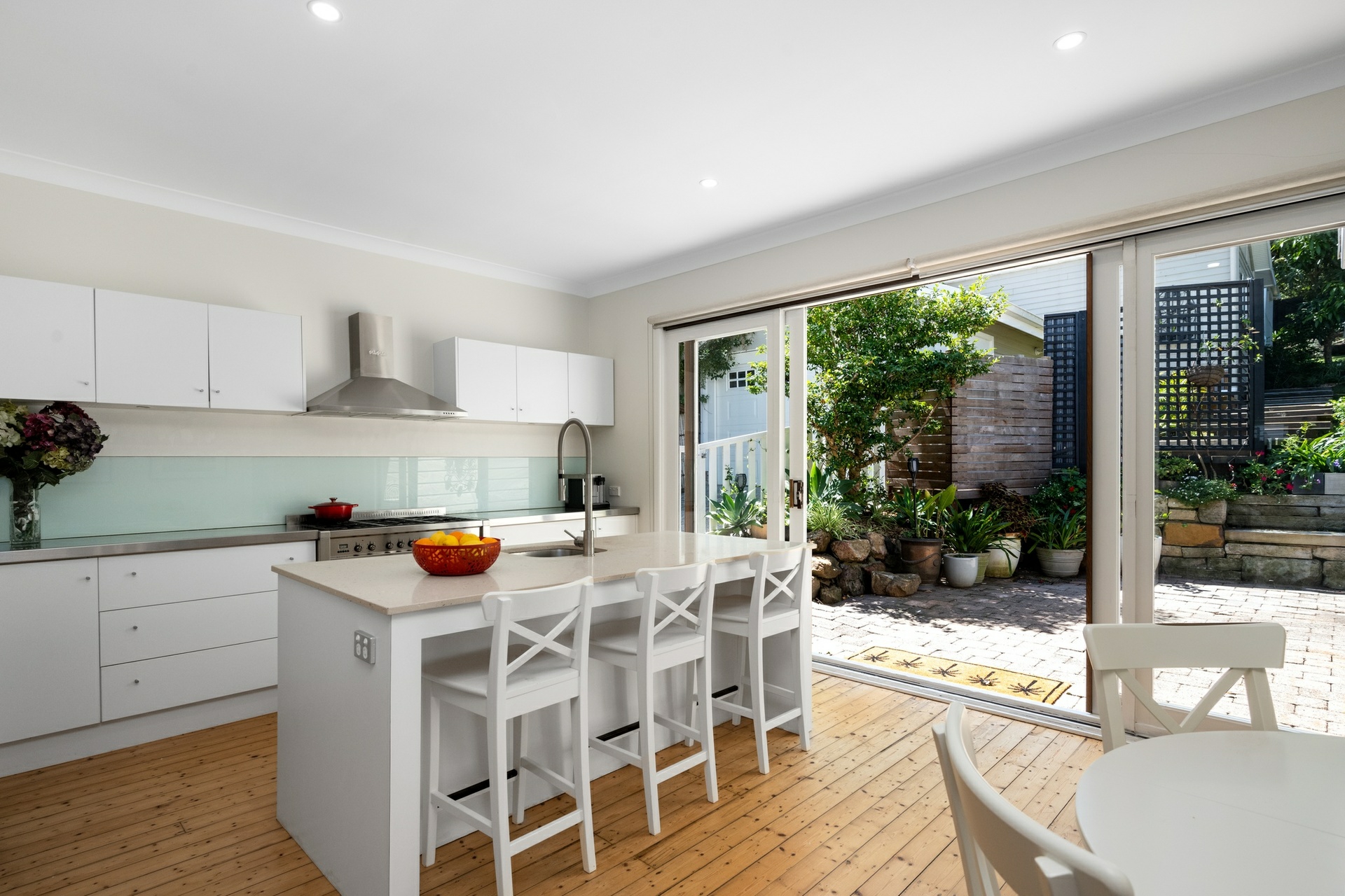 - Stainless steel gas appliances, oversized Smeg oven, walk-in pantry