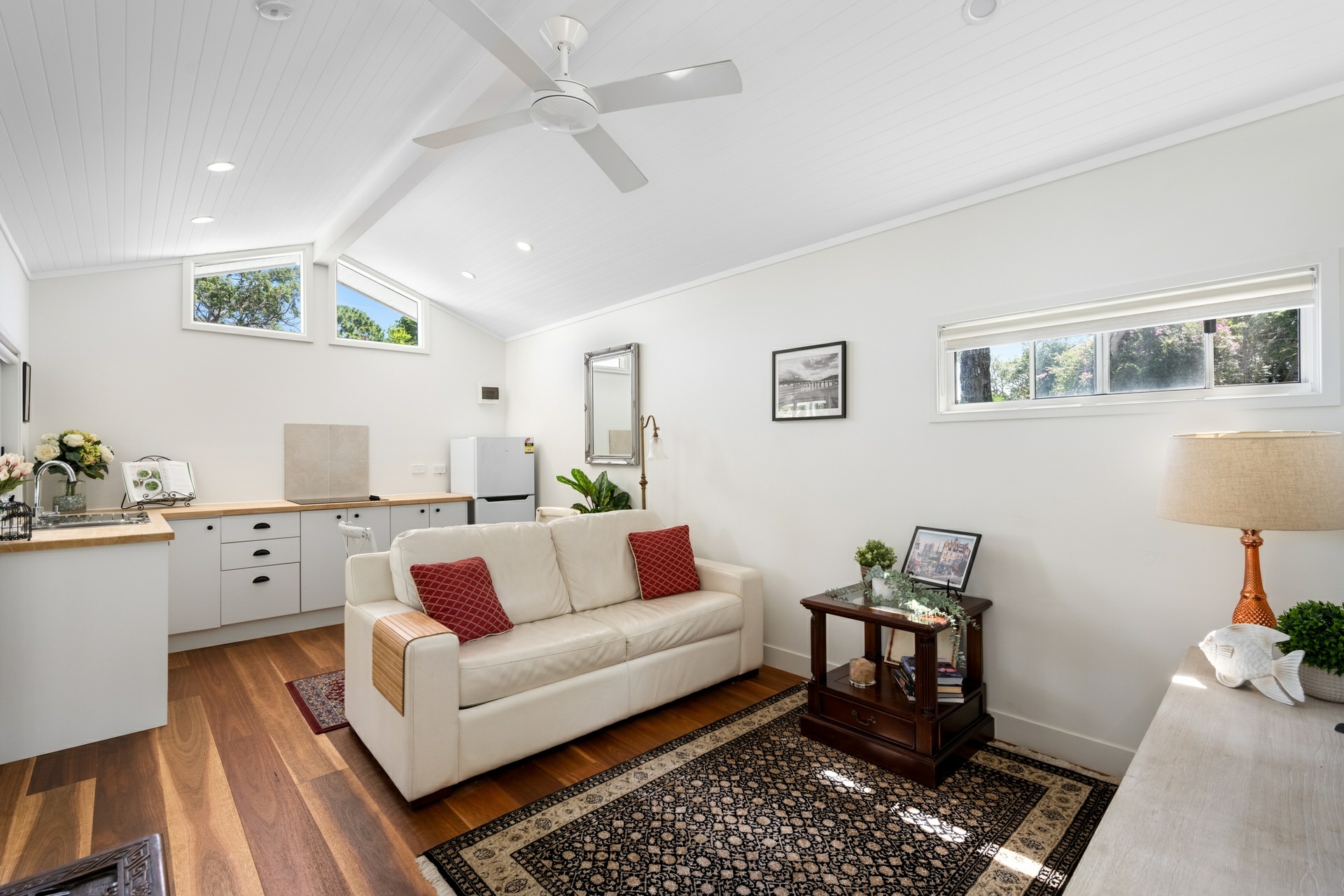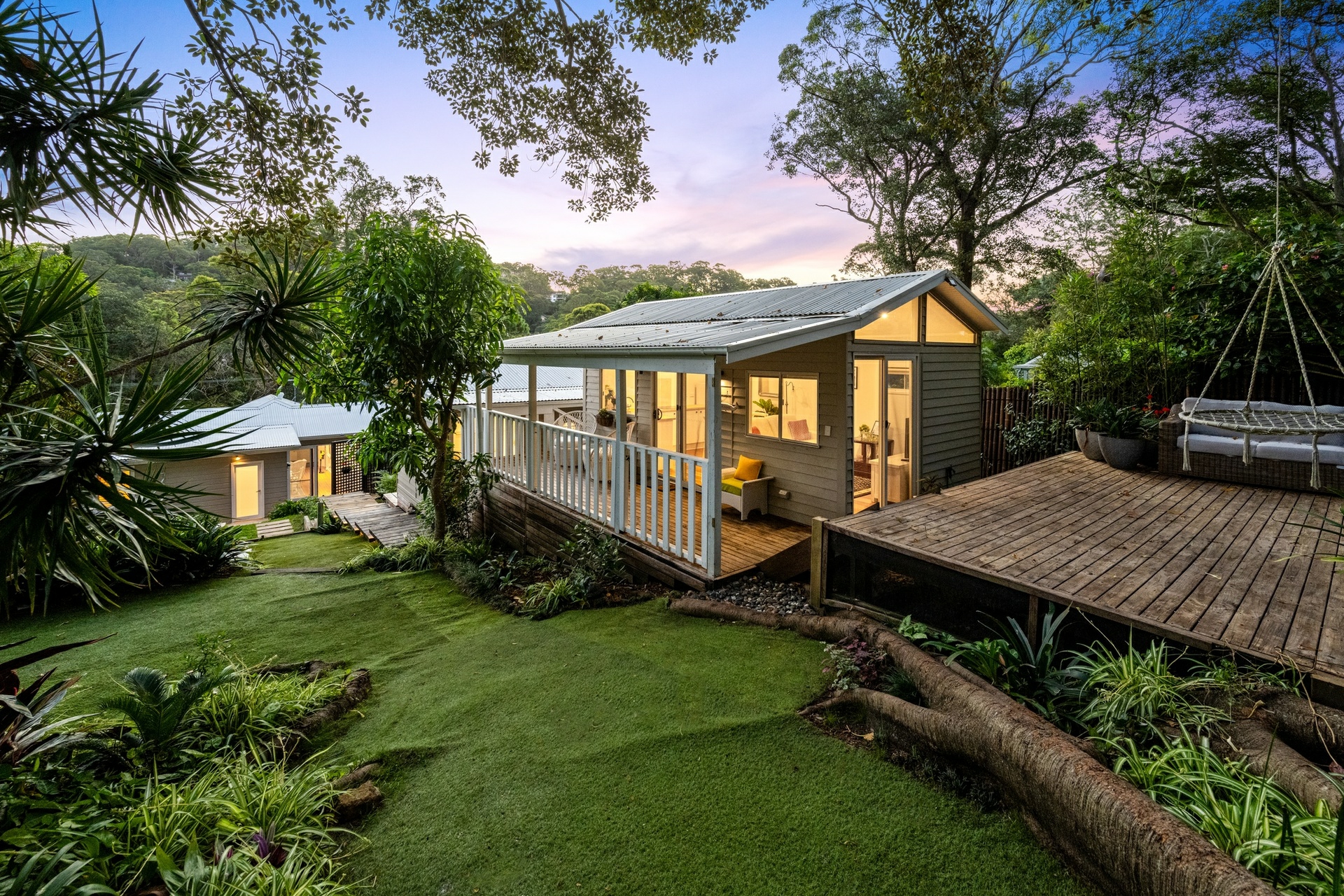 A self-contained cabin at the rear of the property adds flexibility for guests or the opportunity to generate significant rental return. The expansive outdoor gardens feel like a playground of its own, perfect for kids to explore and enjoy. A home that embraces the essence of relaxed seaside living only moments to the beach, village shops, schools, golf courses, and city buses.