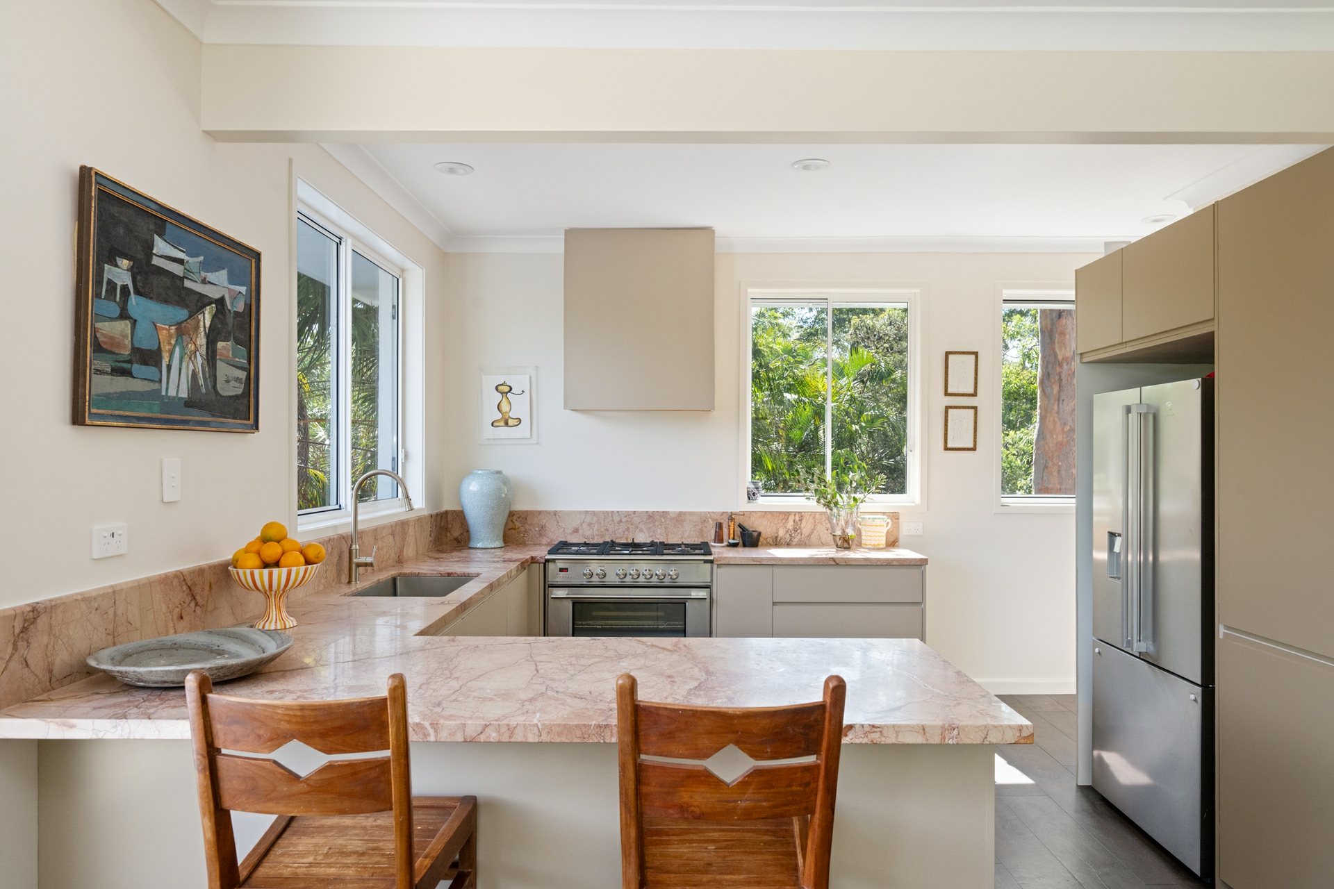 Modernist design meets contemporary expression in this luminous family retreat; it's been reimagined with clarity and confidence, while remaining true to the original forms. The detail-focused renovation shines right through - its streamlined architecture is layered with style, polish and beautiful pops of colour. Floor-to-ceiling glass fills this home with light from sunrise to magic hour, while sunlit terraces, sheltered decks and the mineral pool are simply natural extensions of the living zones. The setting is outstanding as well - nestled at the tip of a quiet cul-de-sac and bordering park reserves, it's no more than a short level walk to the village, school and beach - kids will love the freedom and flexibility of a walk-to-everywhere lifestyle.