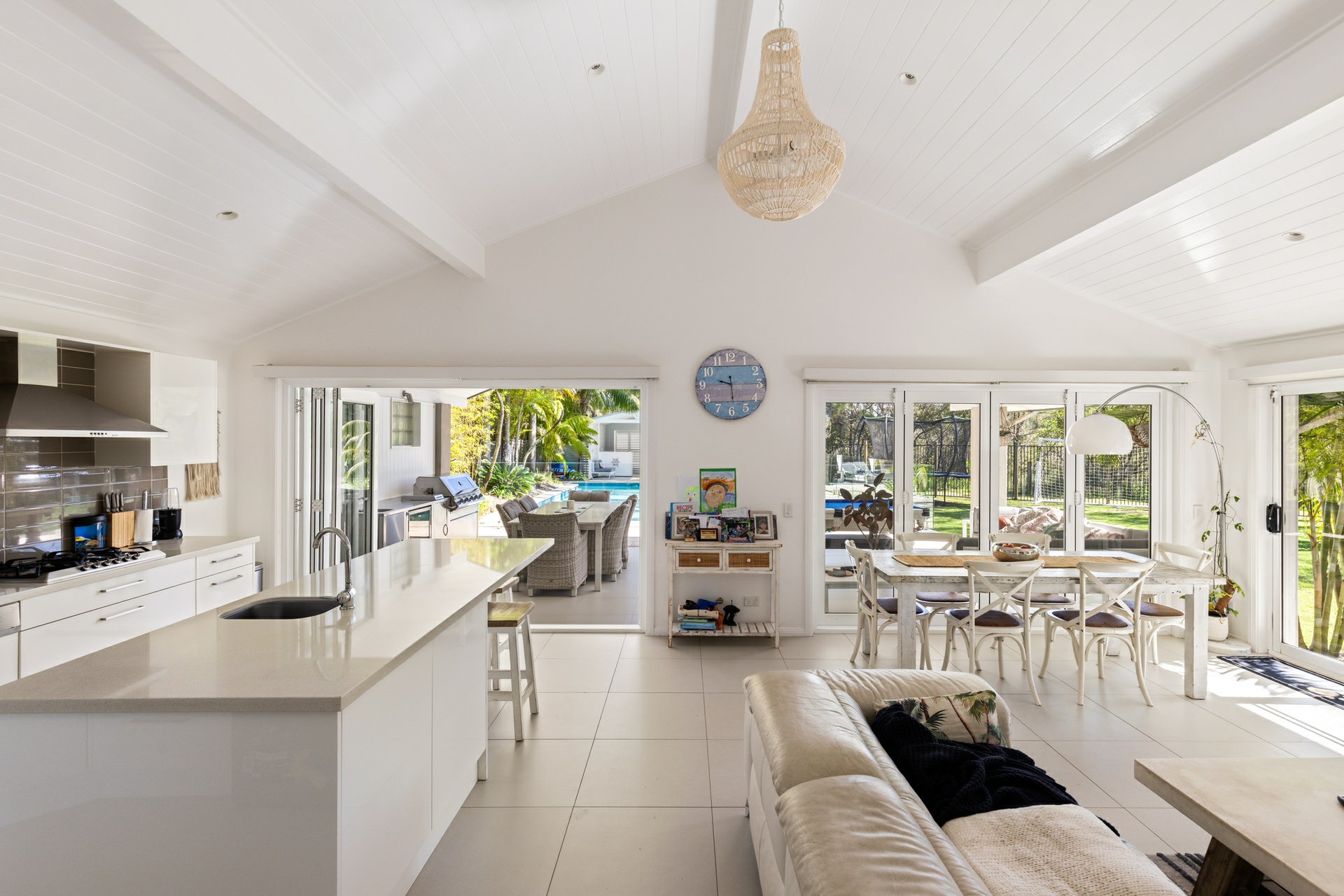Set on a sun-drenched, level 823sqm parcel, the home boasts sleek contemporary design and seamless indoor-outdoor flow. A covered all-weather entertaining area with a fully equipped outdoor kitchen overlooks the sparkling in-ground pool, spa and cabana, perfect for year-round enjoyment. Backing directly onto a marine reserve, the property offers an unrivalled sense of privacy and a tranquil, leafy backdrop.