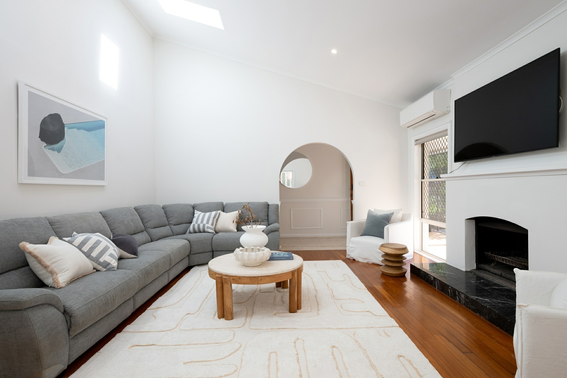 - Split system air-conditioning and a natural wood fireplace
