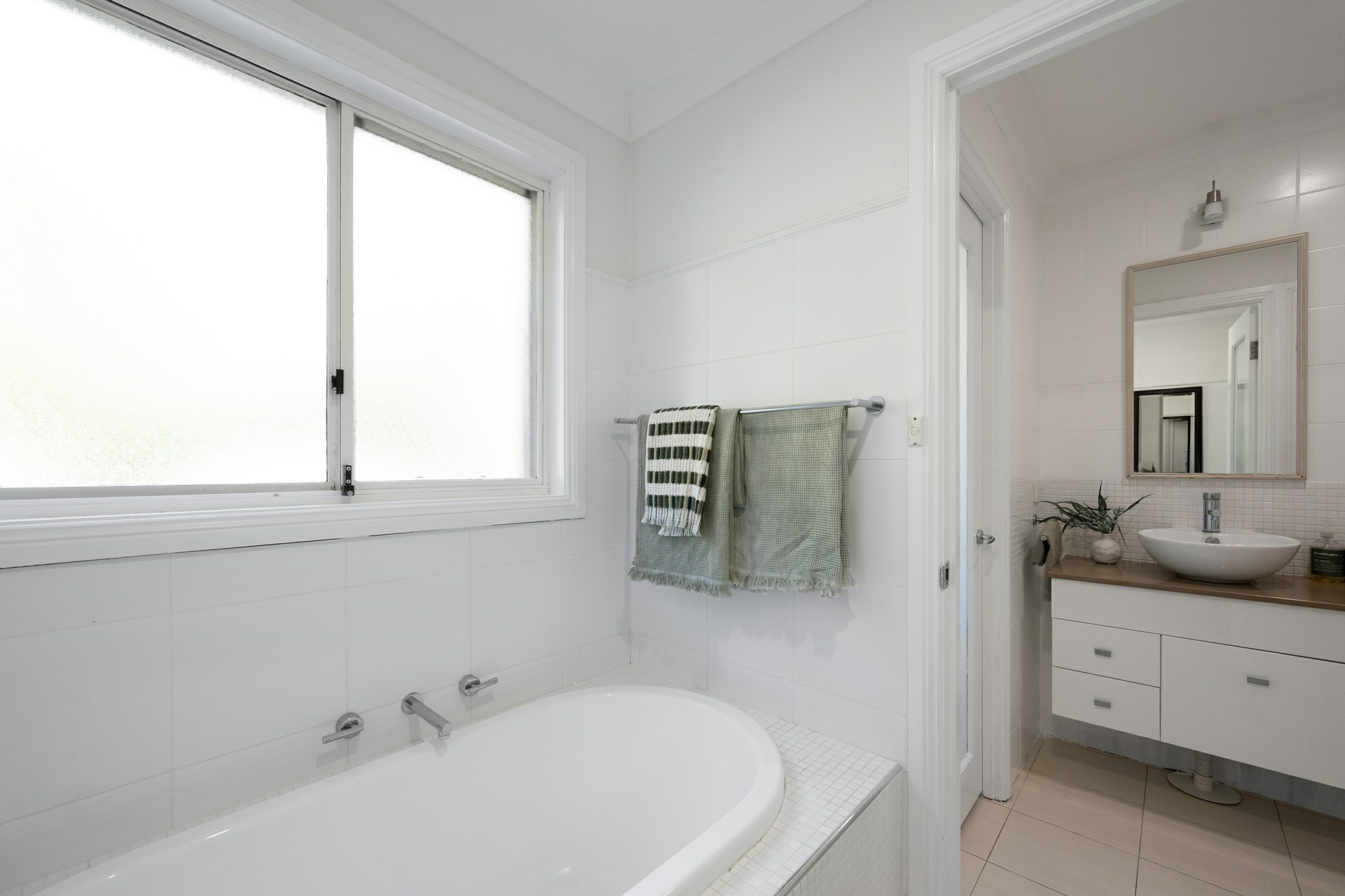 - Tidy bathrooms, separate bathtub and heated towel rails