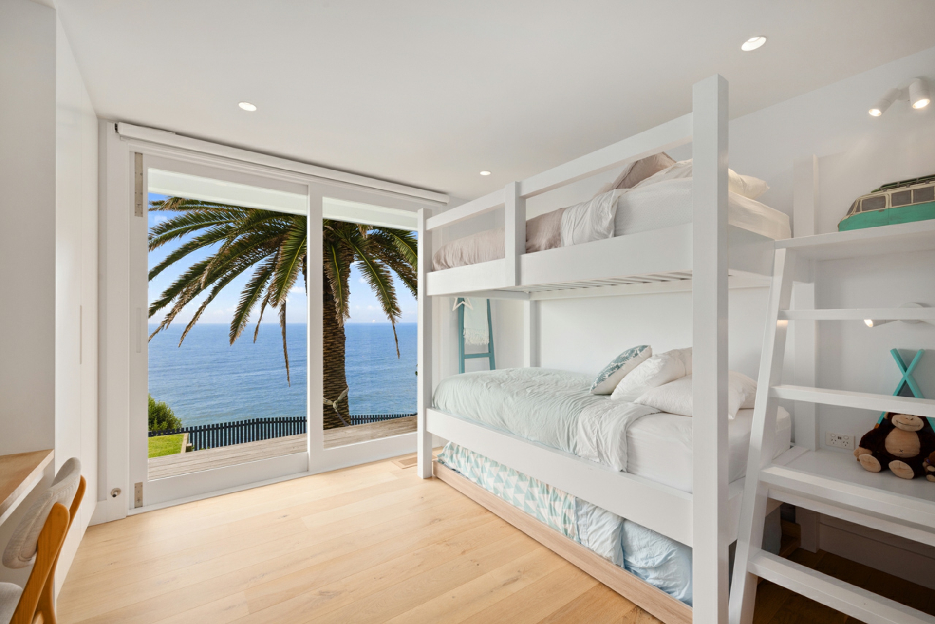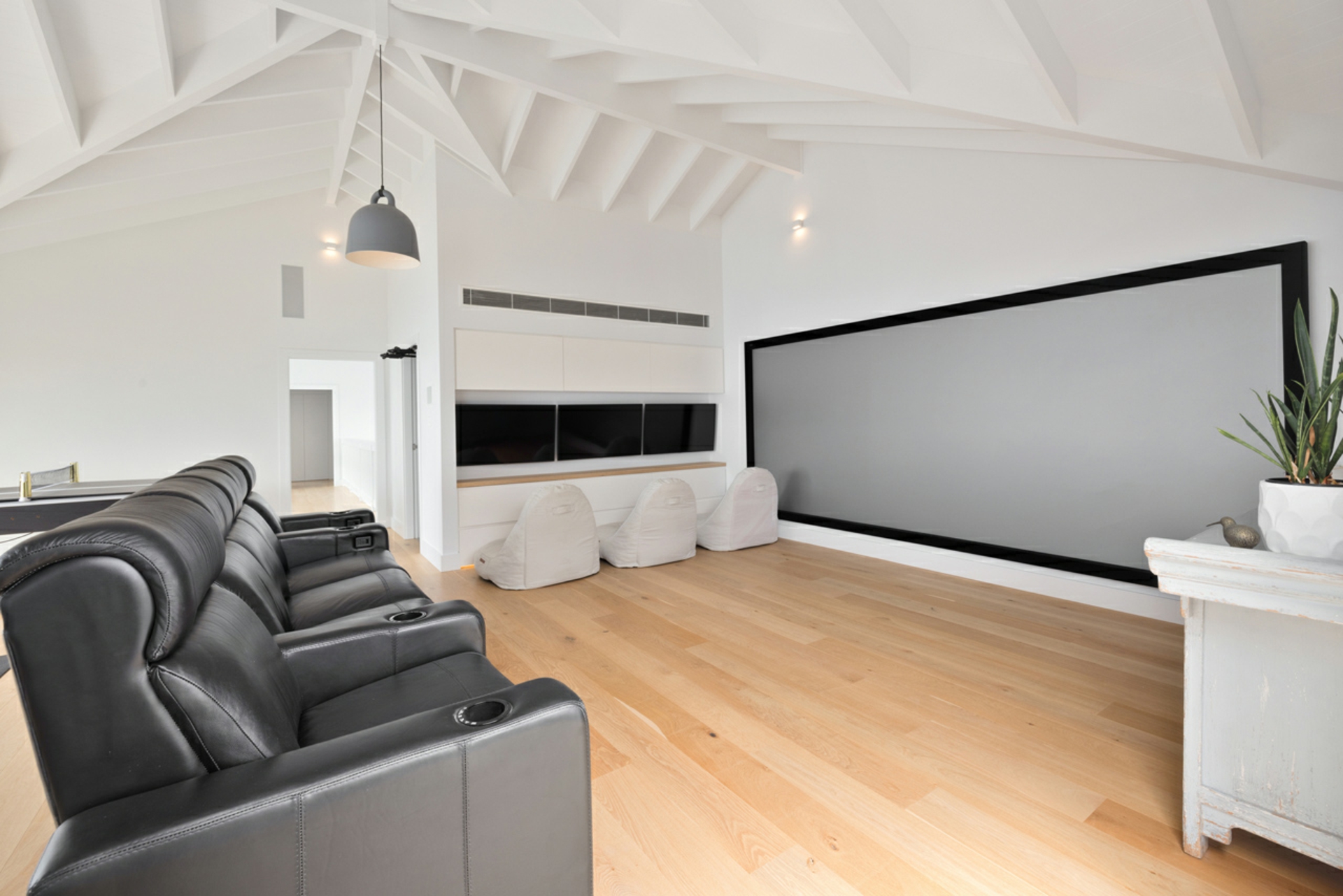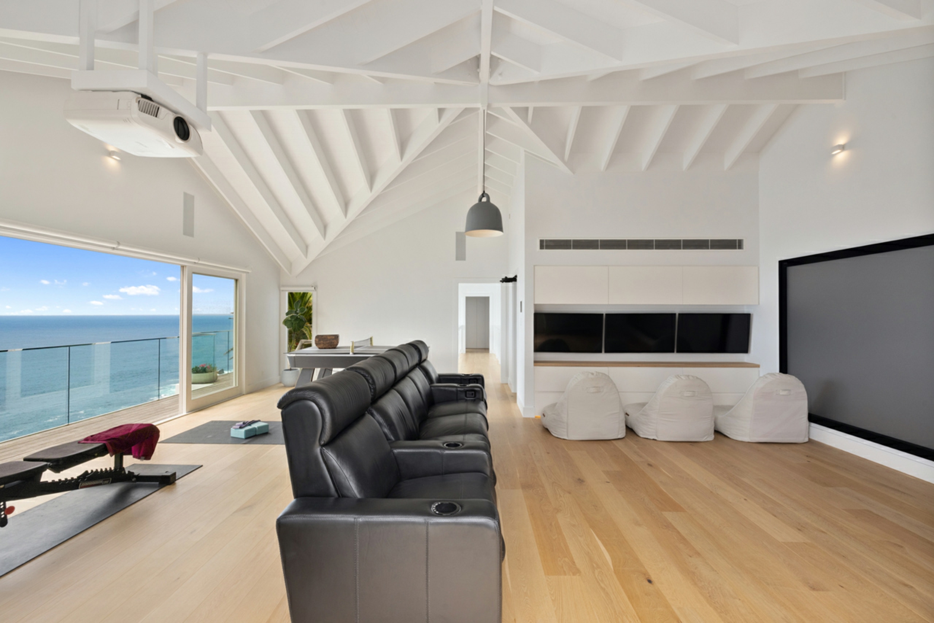 The master suite is a private coastal retreat, an enclave of space, serenity, and luxury. A custom walk-in wardrobe and spa-calibre ensuite deliver a hotel-standard experience in the comfort of your own home. Additional spaces for entertainment and wellbeing, including a state-of-the-art home cinema and private gym, ensure every lifestyle need is met without compromising the home's architectural purity.