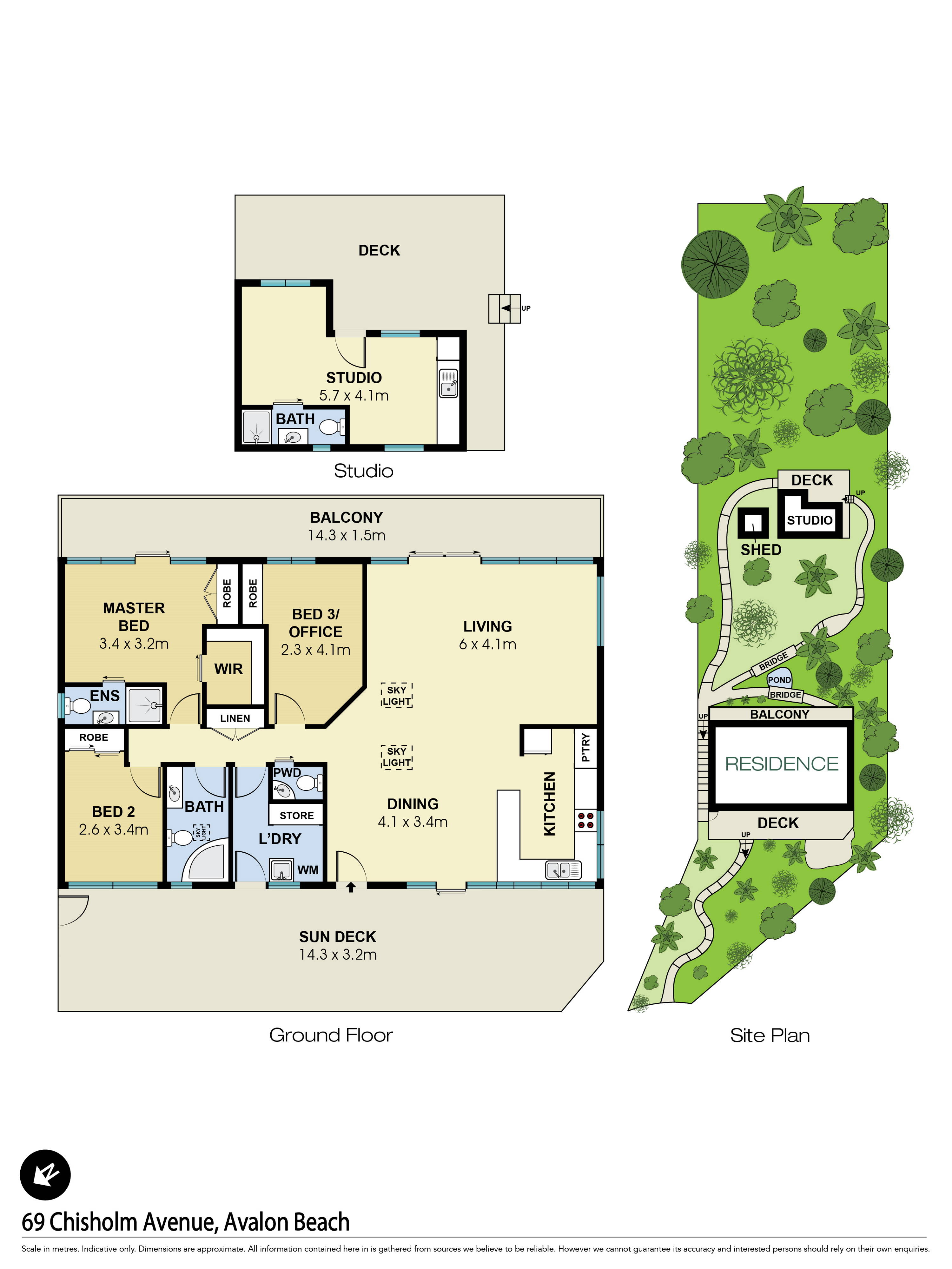 - Three-bedroom home with separate studio