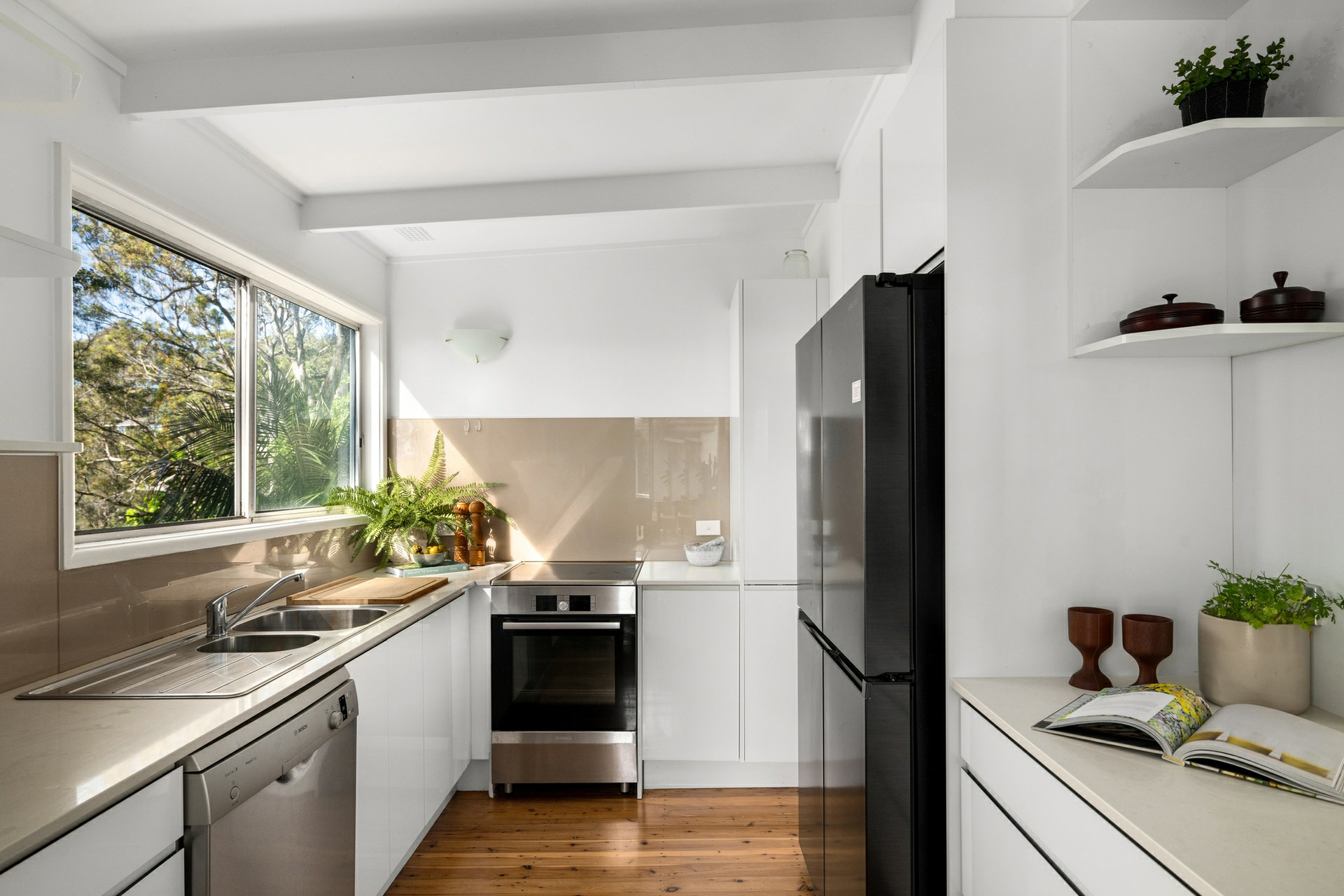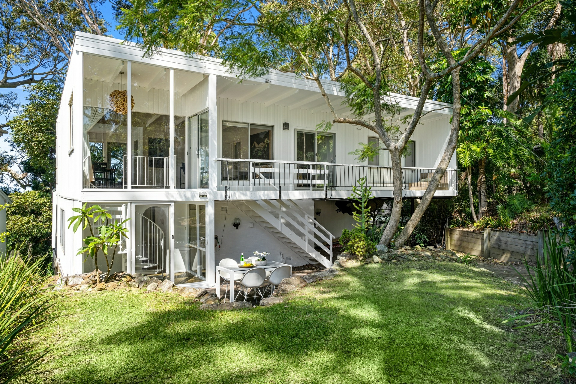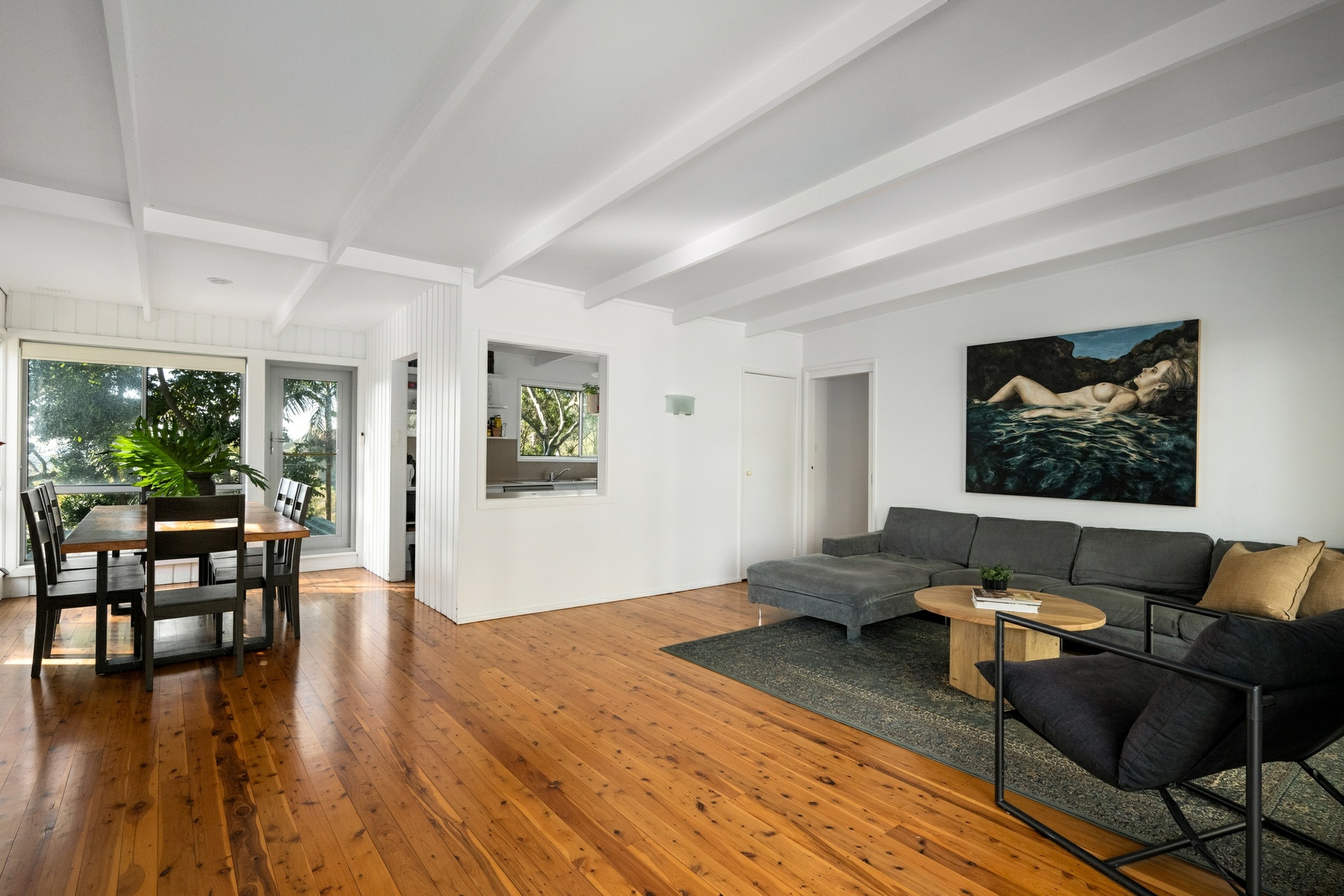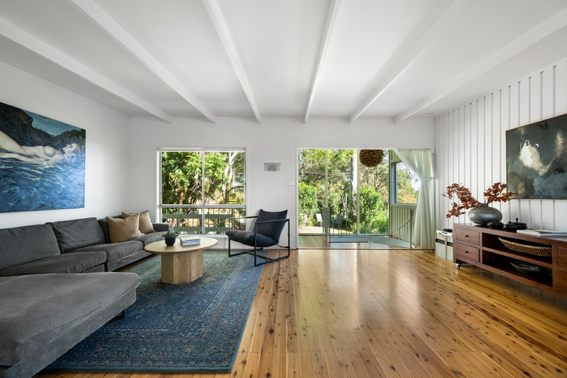 A character filled 1950's beachcomber house, complimented with timber floors, exposed rafters, and V-groove panelling. The interiors exude warmth and character, and embrace the summer breeze and winter sun. Thoughtfully designed for a laid-back lifestyle, its adaptable layout fosters both connection and calm. A true sanctuary by the sea, immersed in the tree tops and nature's beauty, yet just moments to Paradise Beach, marinas, village shops, trendy cafes, restaurants, schools, golf courses, and iconic surf beaches.