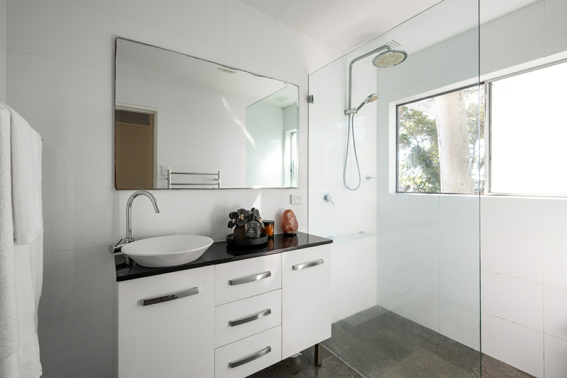 - Updated master bathroom with separate WC and sleek floor-to-ceiling tiles