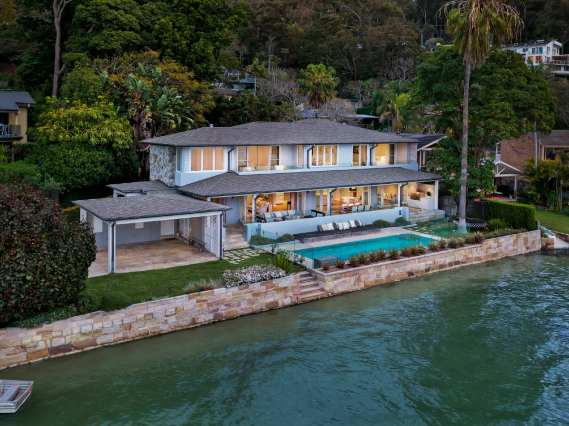 Rare - Graciously embracing the coastline, the breathtaking residence is orientated due north to showcase stunning and expansive water views across the pristine bay with a 180 degree vistas across Palm Beach to West Head. Set back perfectly from the foreshore on a flat block of land "Rahiti" is a rarity on Pittwater.