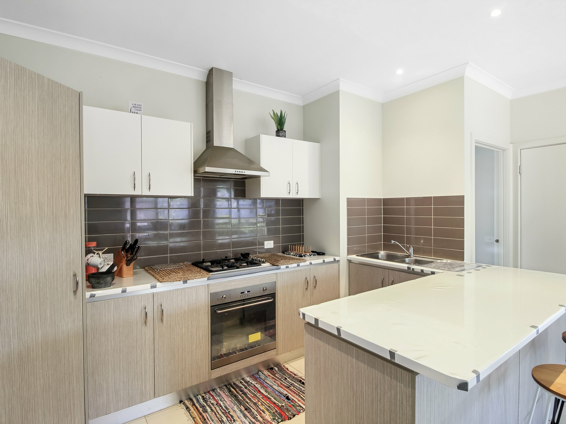 The modern kitchen is fitted with a gas cooktop, electric oven, generous preparation space and good storage, all designed to interact effortlessly with the living zone and outdoor area. Sliding doors lead to a covered alfresco space, ideal for year-round gatherings or simply enjoying your morning coffee outdoors.