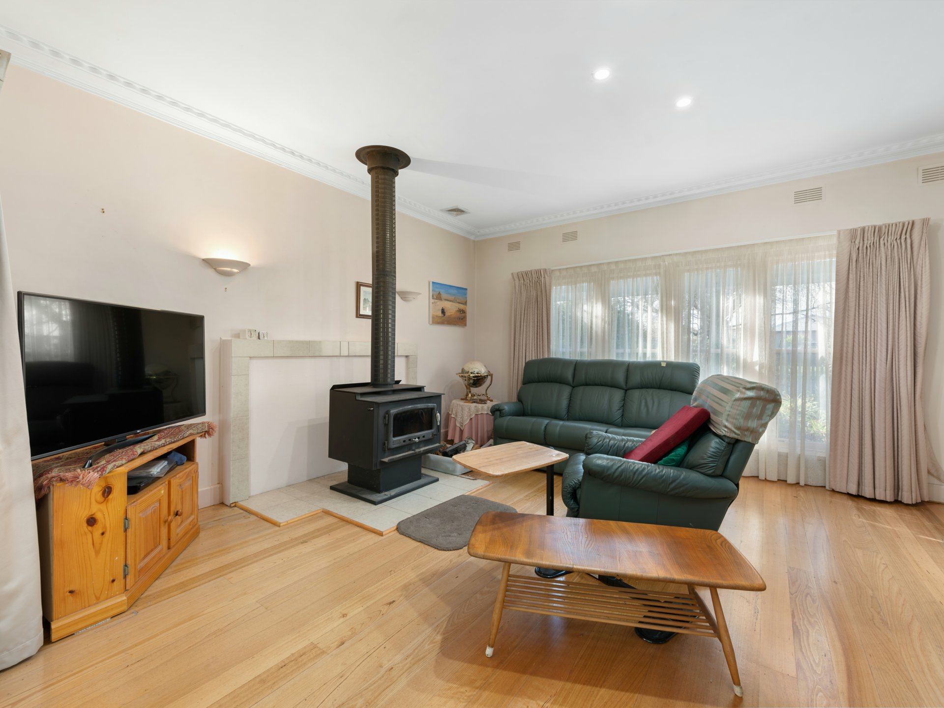 Stay warm and cozy during chilly evenings with the solid wood heating, complemented by central ducted natural gas heating plus ducted evaporative cooling that ensures optimal comfort year-round.