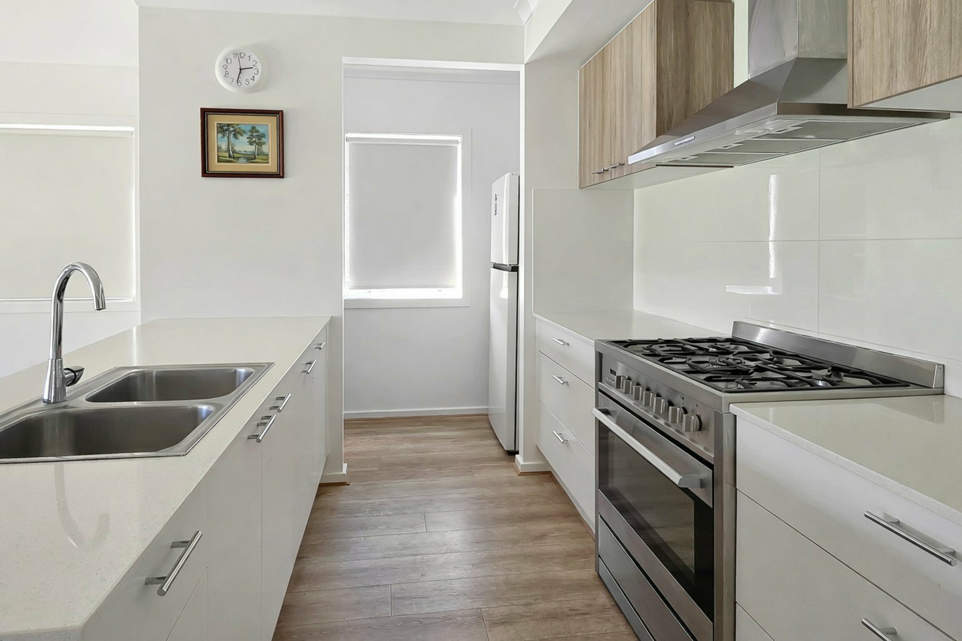 The open plan kitchen, dining and living area connects easily, with a galley-style kitchen featuring a small walk-in pantry. This bright open family living area features a wall niche that overlooks the rumpus room to make this an ideal space for families or those needing hobby space.