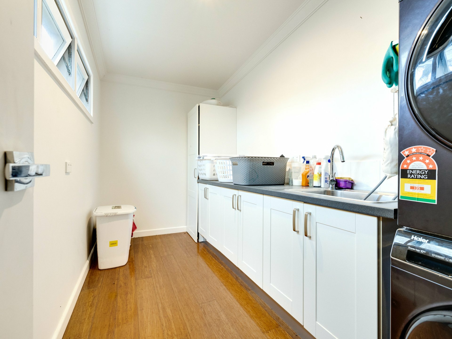 Accommodation is generous, with two large bedrooms featuring built-in robes, serviced by a well-appointed family bathroom complete with a freestanding bath, plus a separate powder room and a large laundry. The expansive master suite is a true retreat, enjoying morning sun and tranquil garden views, along with a walk-in robe and a functional ensuite.