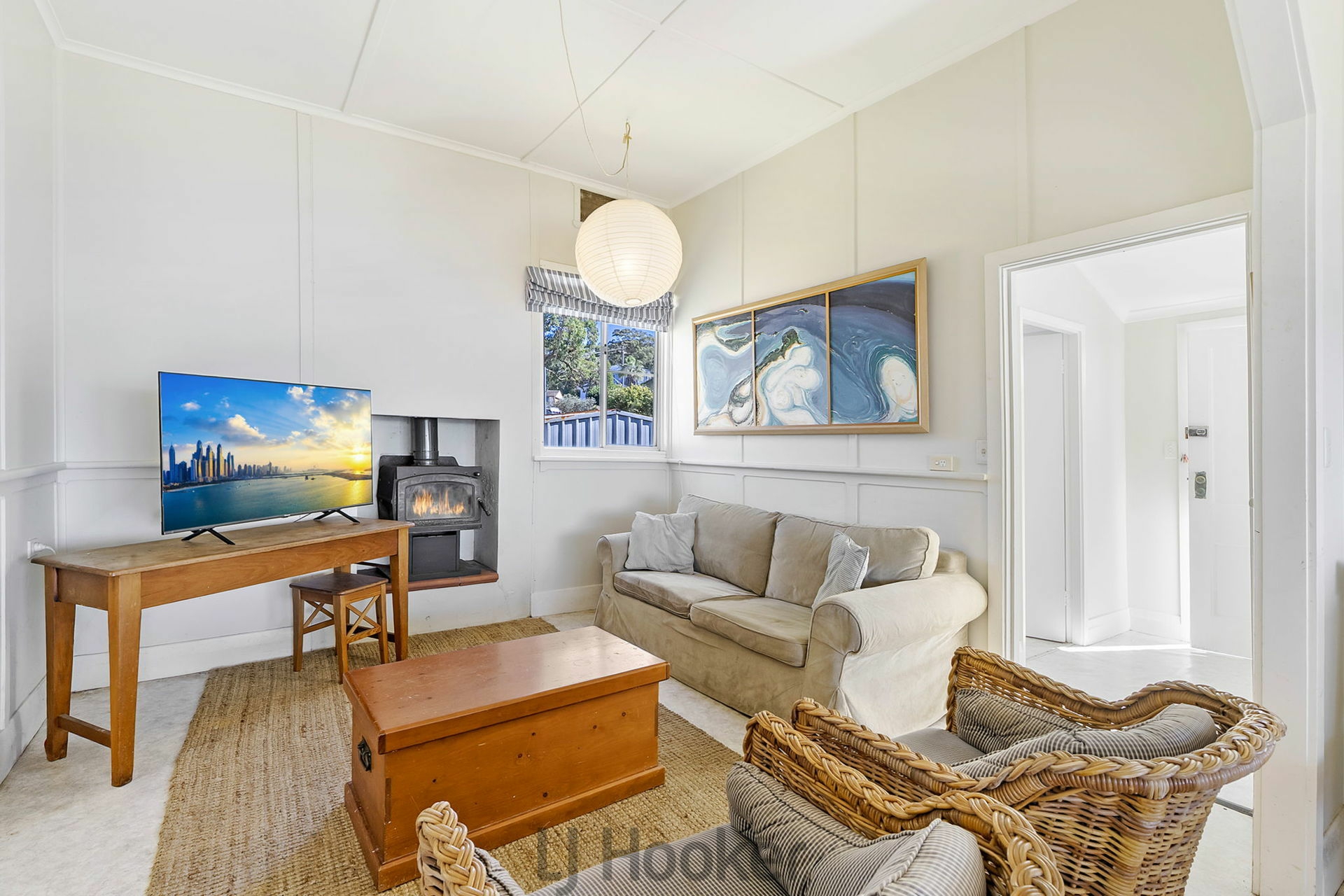 The home is well maintained and ready to enjoy, with a functional design and charming features including high ceilings and cozy fireplace.