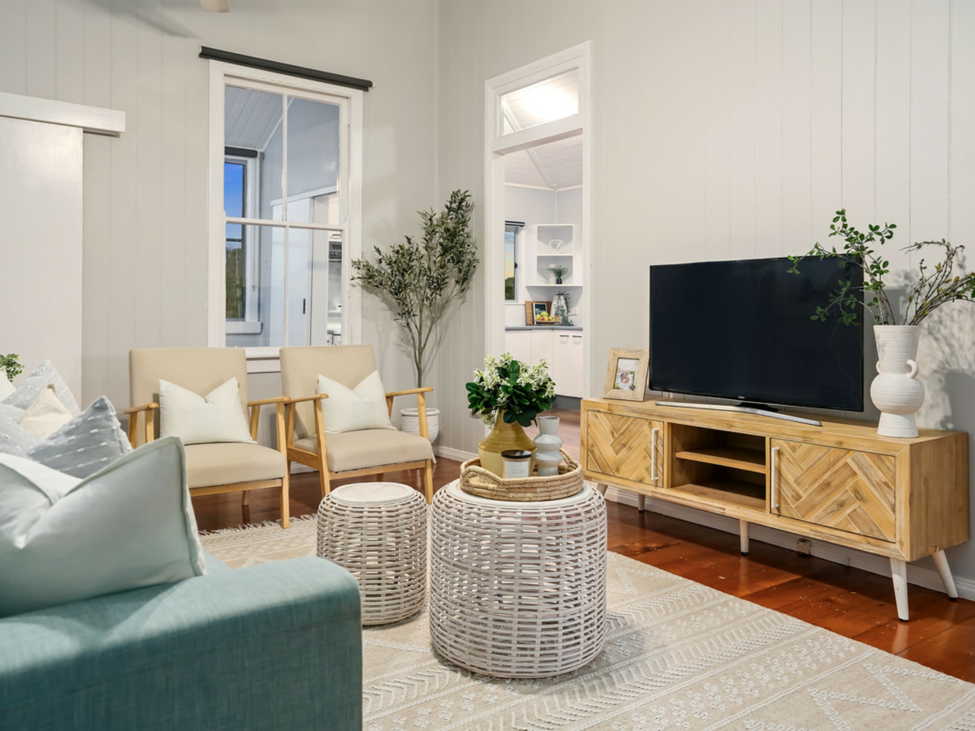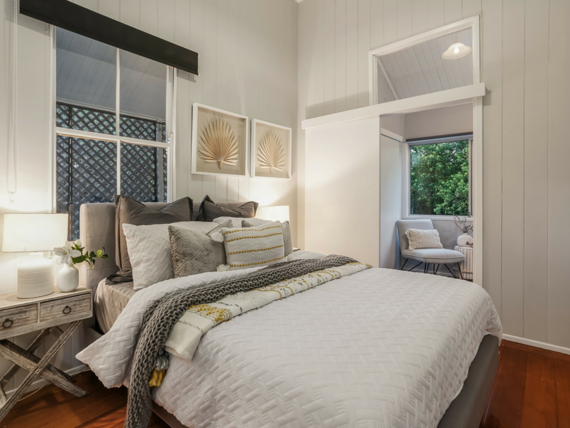The Queenslander home has been recently renovated, but retains much of the character and charm from the era in which it was built. Character features include 12-foot ceilings, polished pine floorboards, VJ Paneling, pressed metal ceilings and sash windows. The home has a fresh neutral paint palette inside and out, 3 bedrooms including a luxurious master suite, living and dining room, a lovely modern kitchen, 2 stylish bathrooms, a separate sitting room and a wide front verandah.
