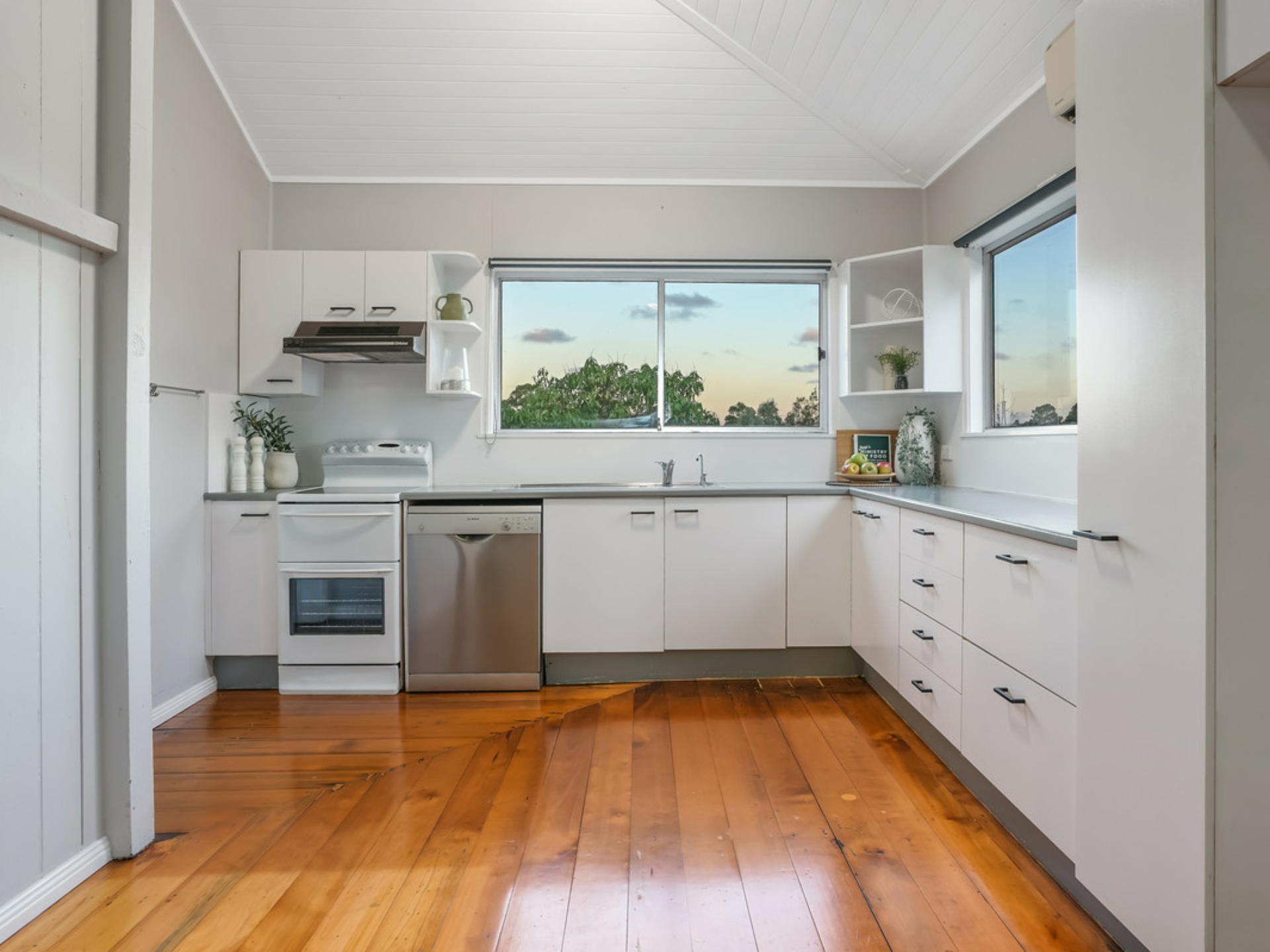 - The refurbished kitchen provides modern appliances and an abundance of bench space and storage. It captures the best outlook of the yard and parkland behind.