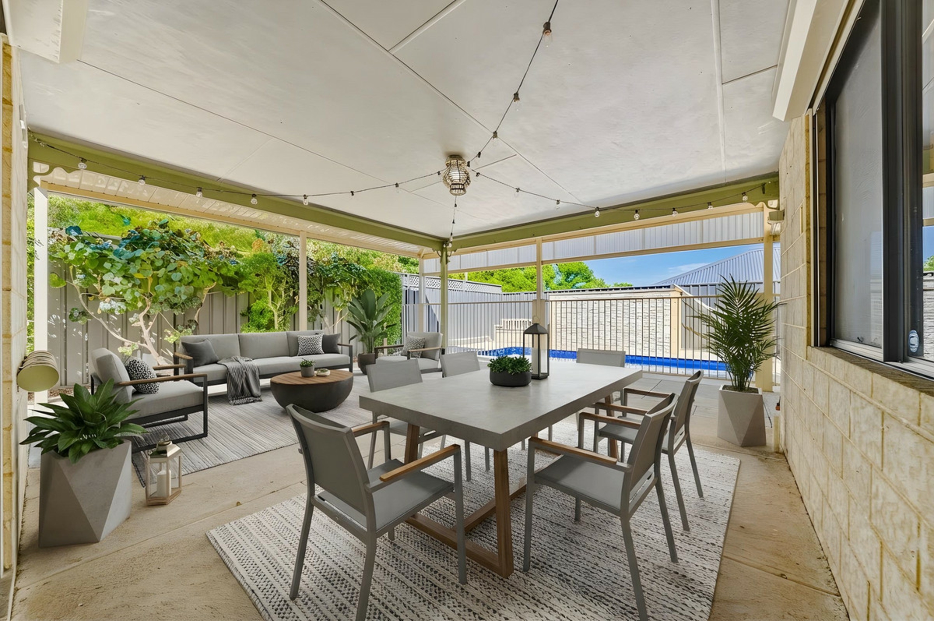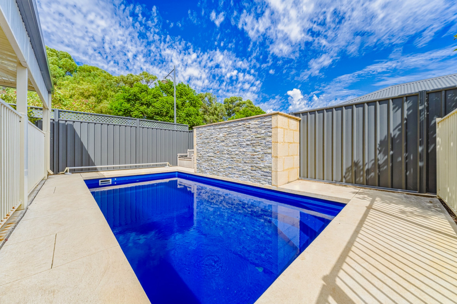 Step outside to your own private oasis. The impressive alfresco with poured limestone paving overlooks established gardens and a heated swimming pool with electric heating, creating a resort-style setting for year-round enjoyment.