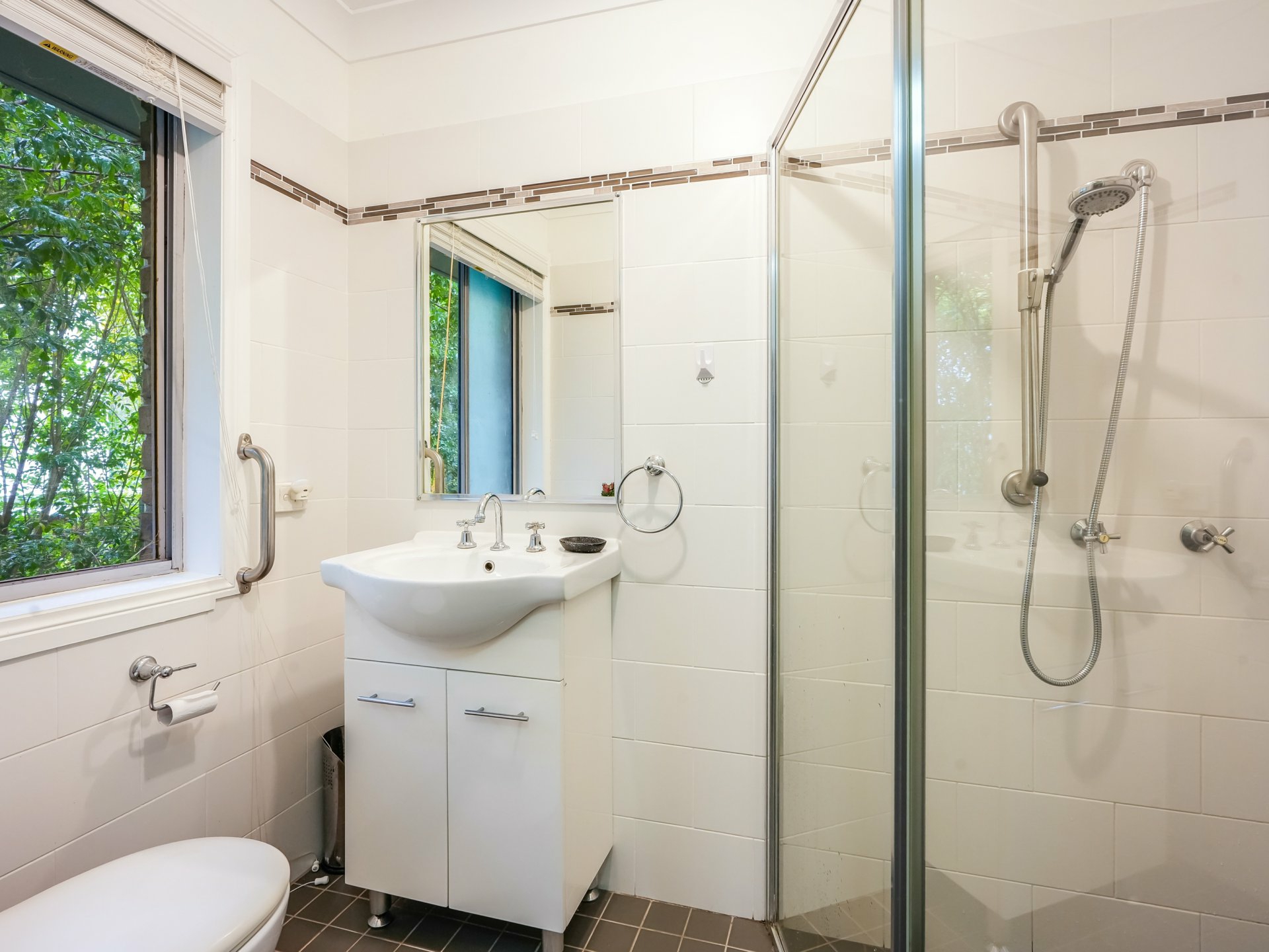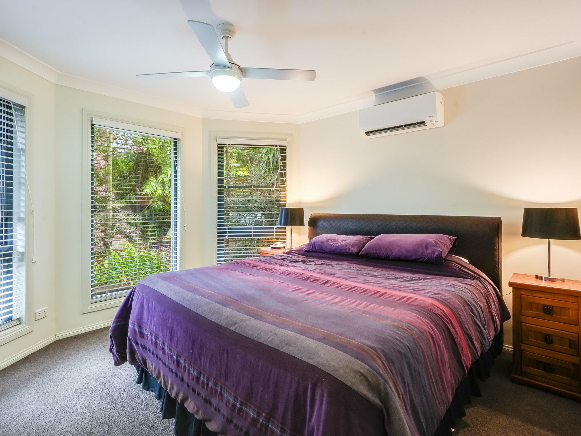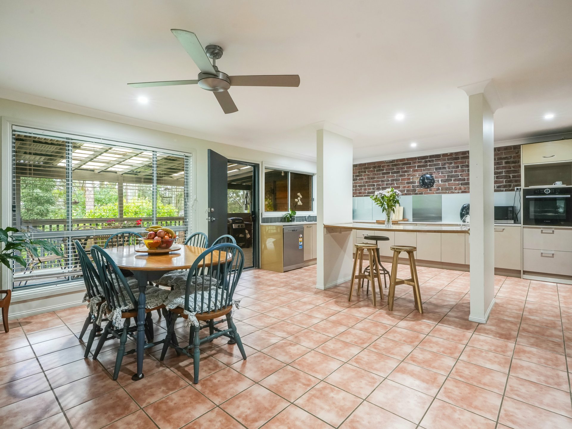 Along the hall to the main bathroom and two further bedrooms, the kitchen and dining area is spacious and has electric cooking, dishwasher with plenty of cupboards and bench space. This area is air-conditioned and large enough for the dining table and more. Out from the kitchen you will love the covered deck, this is elevated and looks over the beautiful backyard.