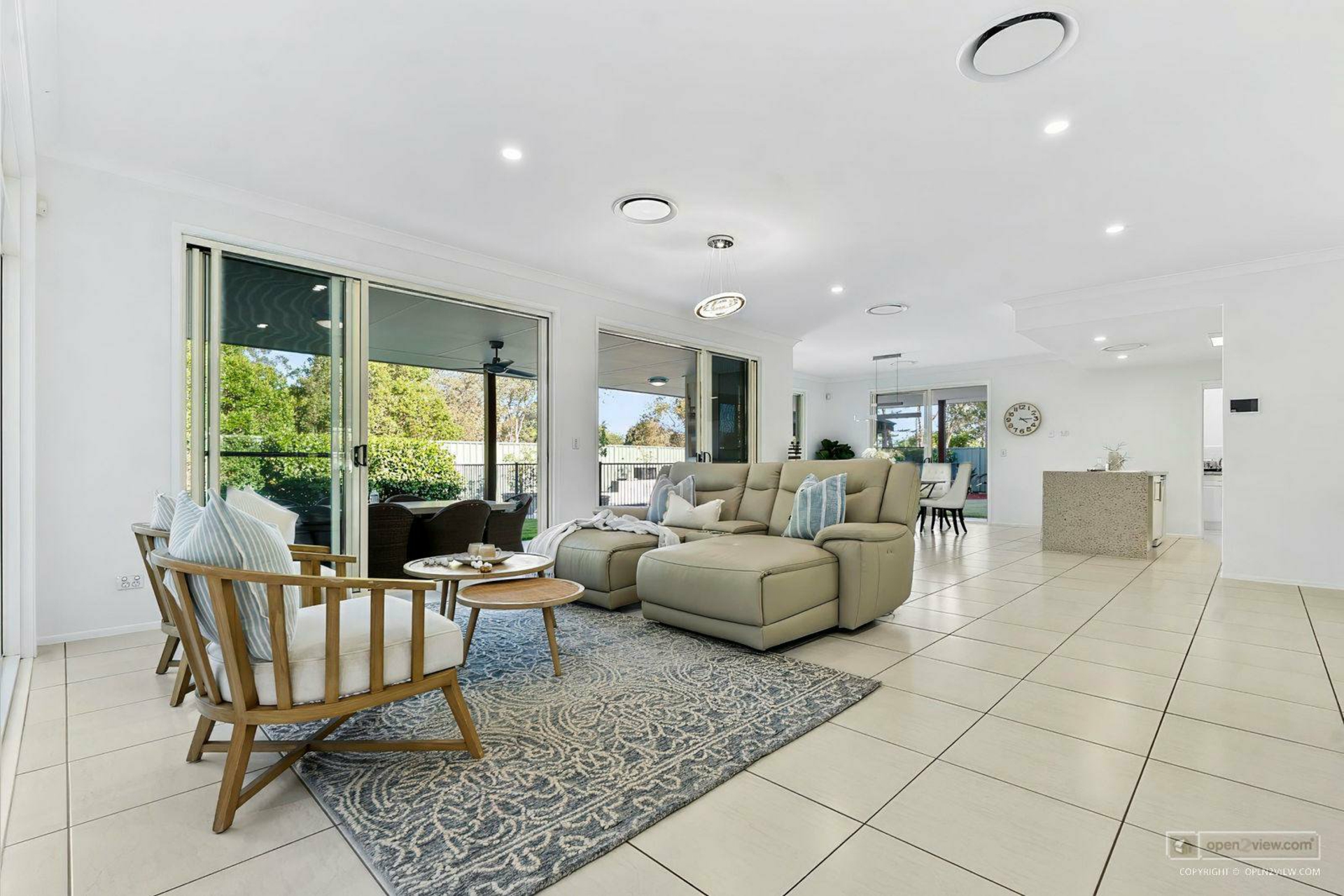 Living and dining - access to outdoor entertaining, designer pendant lights