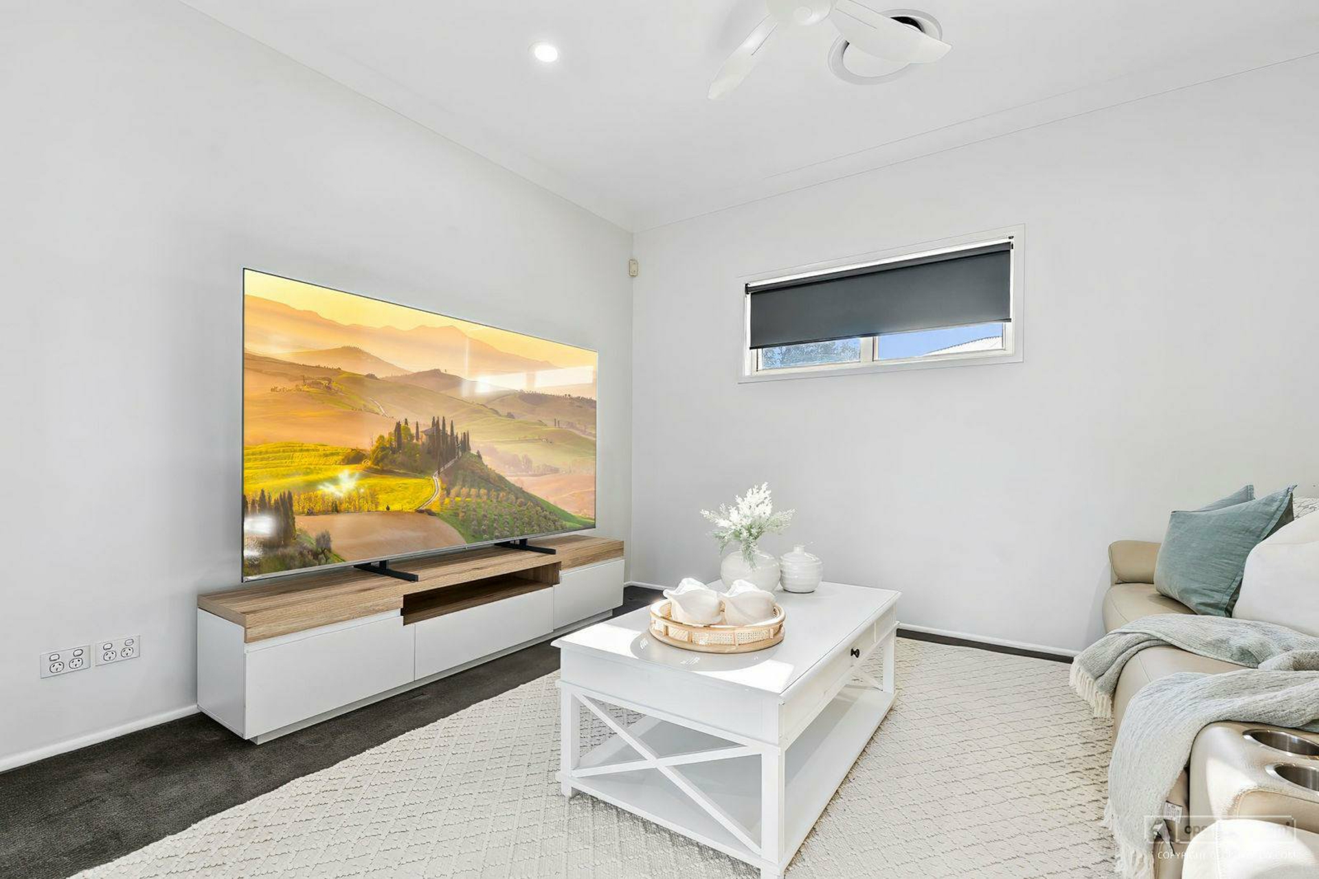 Media room - sound proof, carpet, ceiling fan