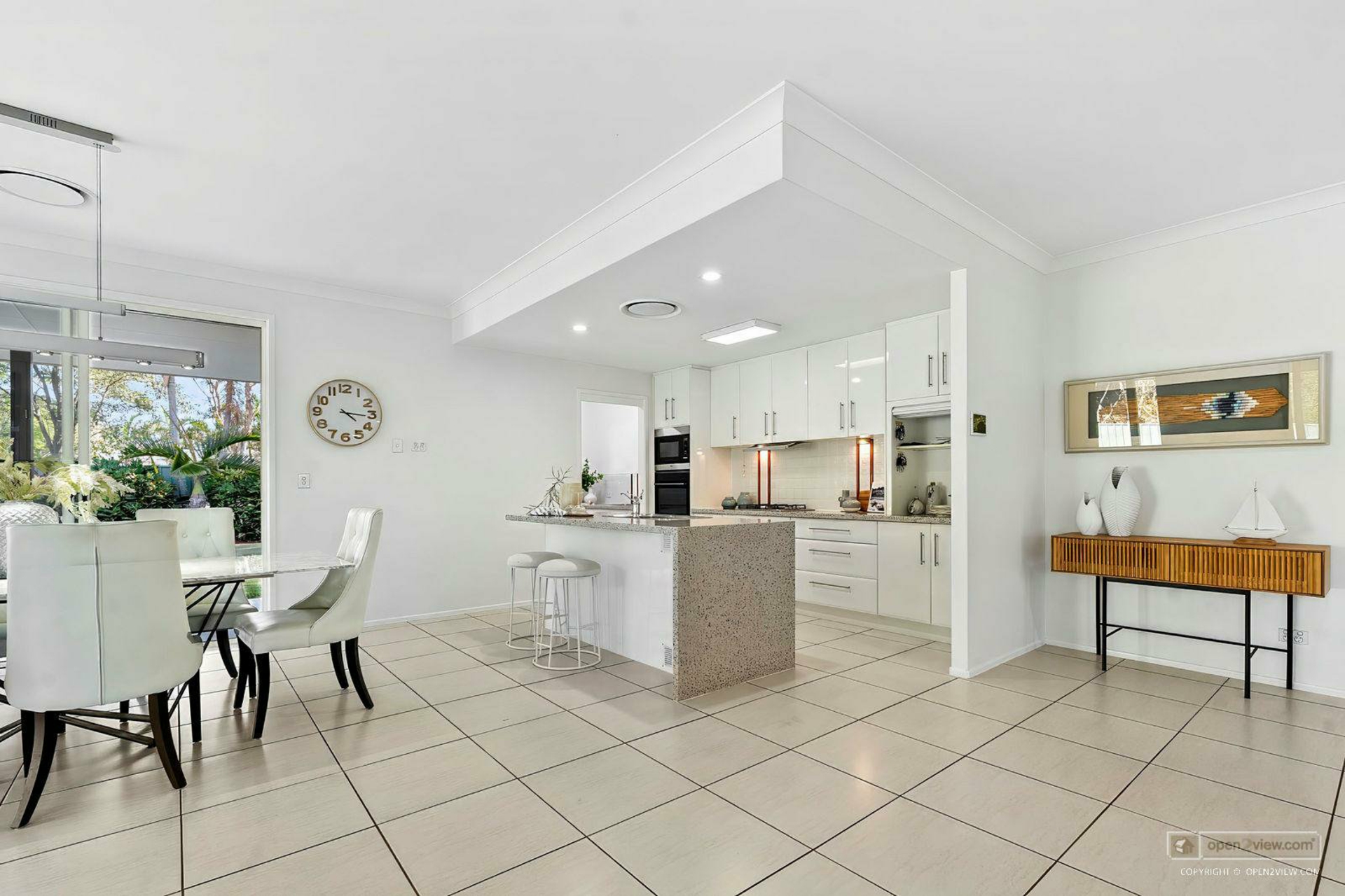 Open plan kitchen, living and dining