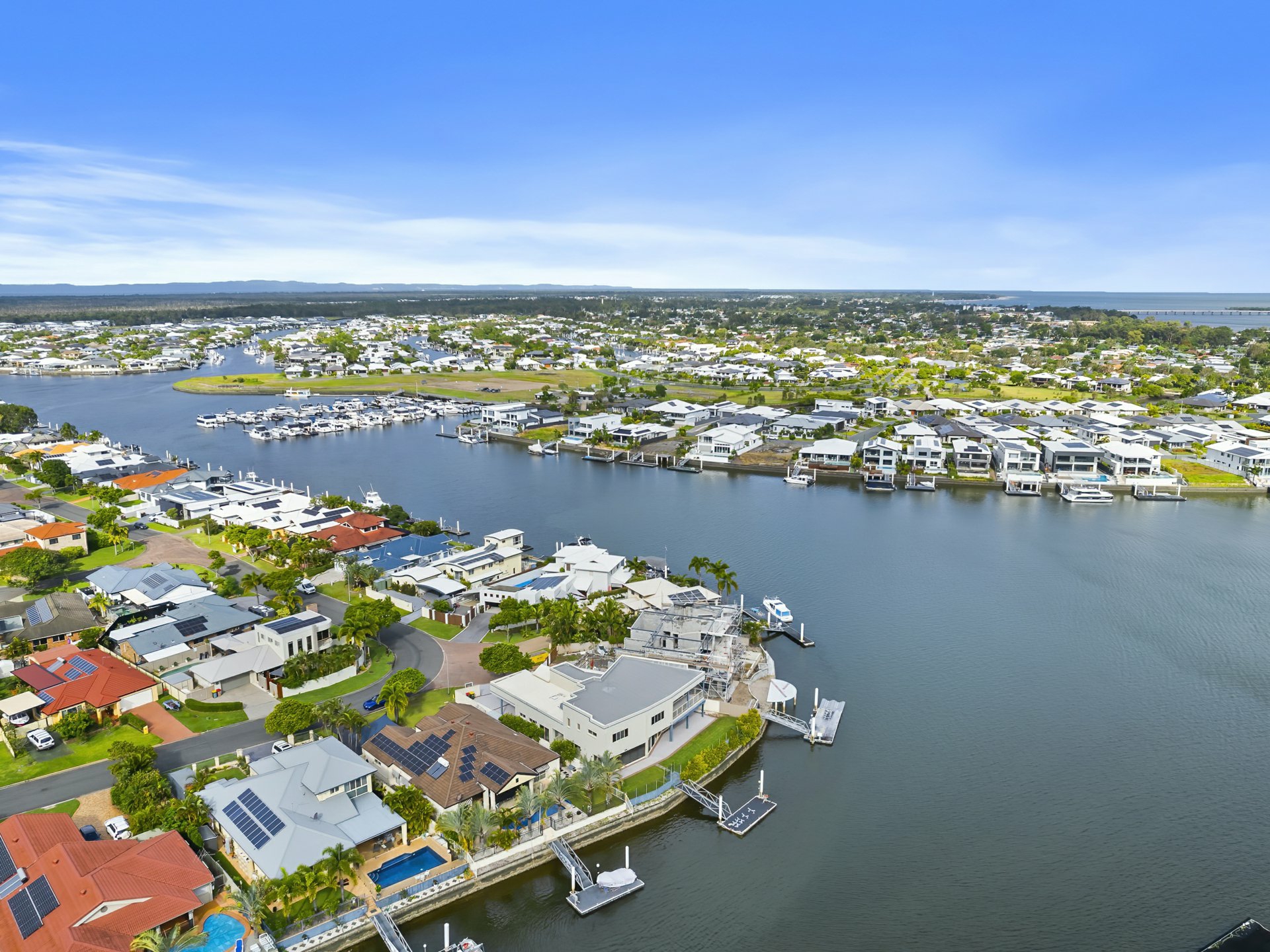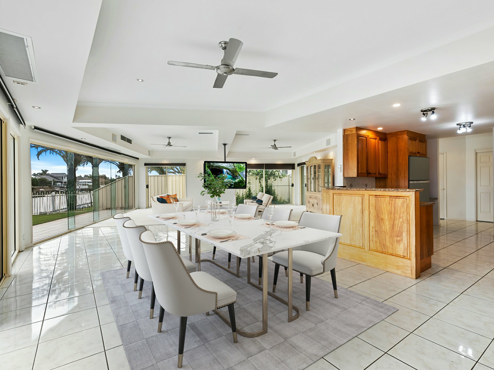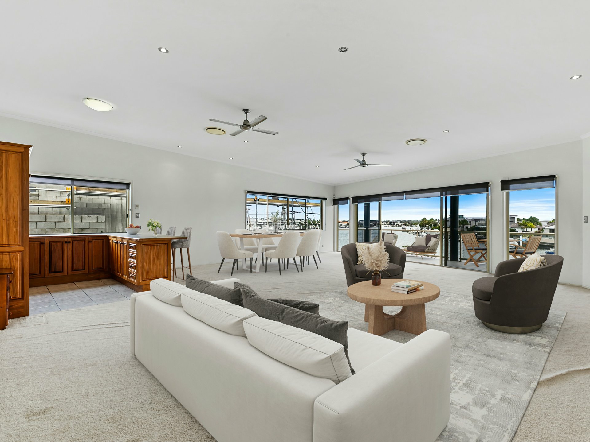 Glass from floor to ceiling, overlooking the Banksia Beach Canal System