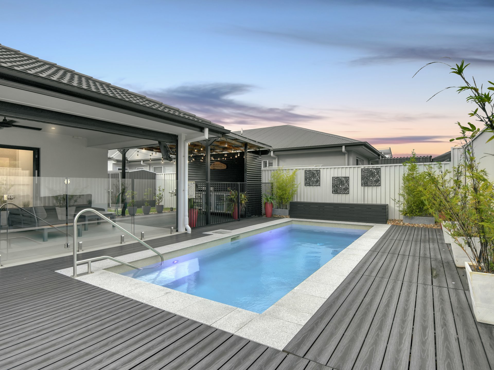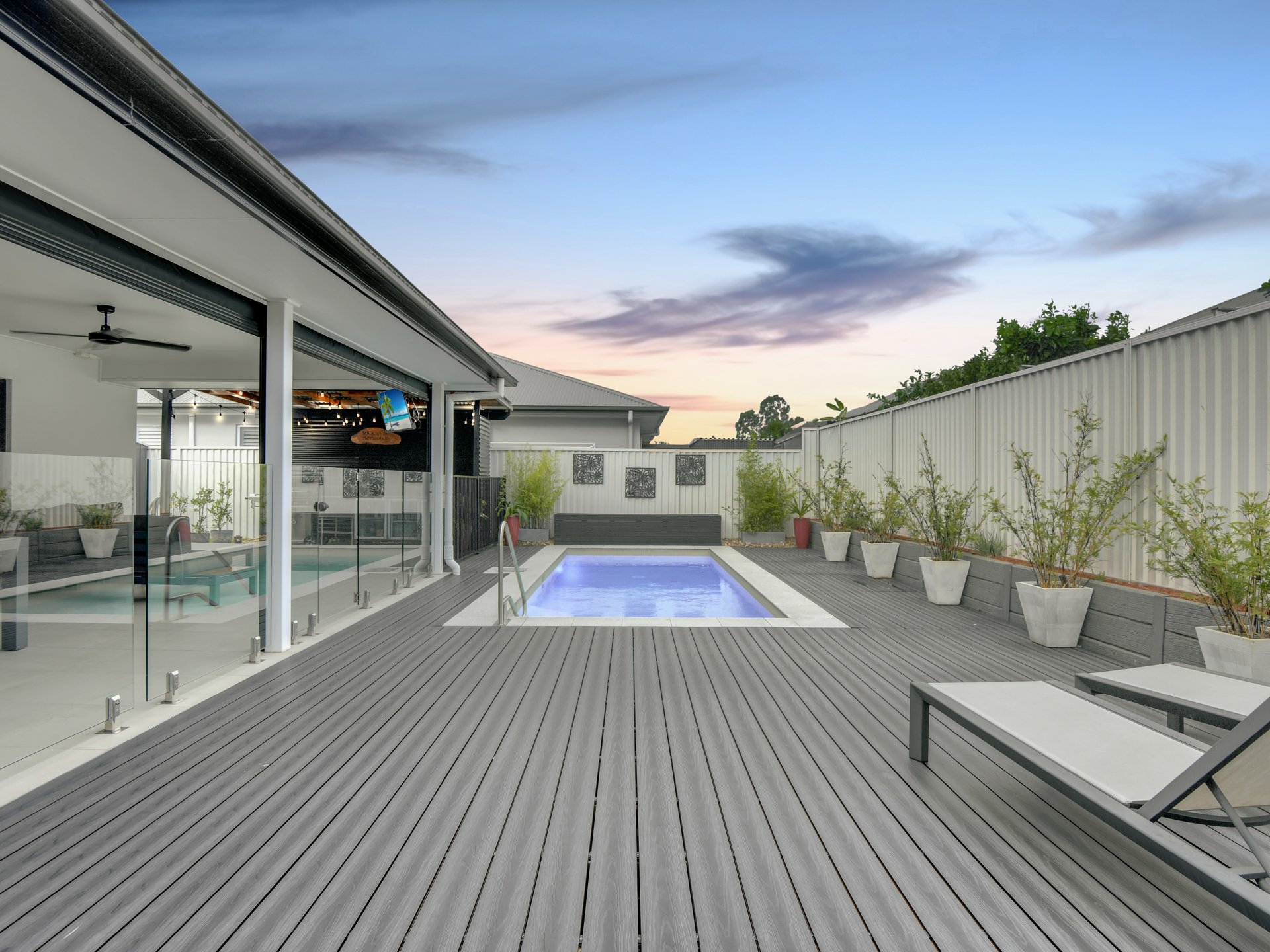 Set within the highly sought-after Pacific Harbour Golf Estate, this beautifully presented three-bedroom, two-bathroom home is designed for relaxed living and effortless entertaining. Boasting multiple outdoor entertaining spaces and a large in-ground swimming pool, it’s perfect for family gatherings, summer barbecues, or simply enjoying the Queensland sunshine.