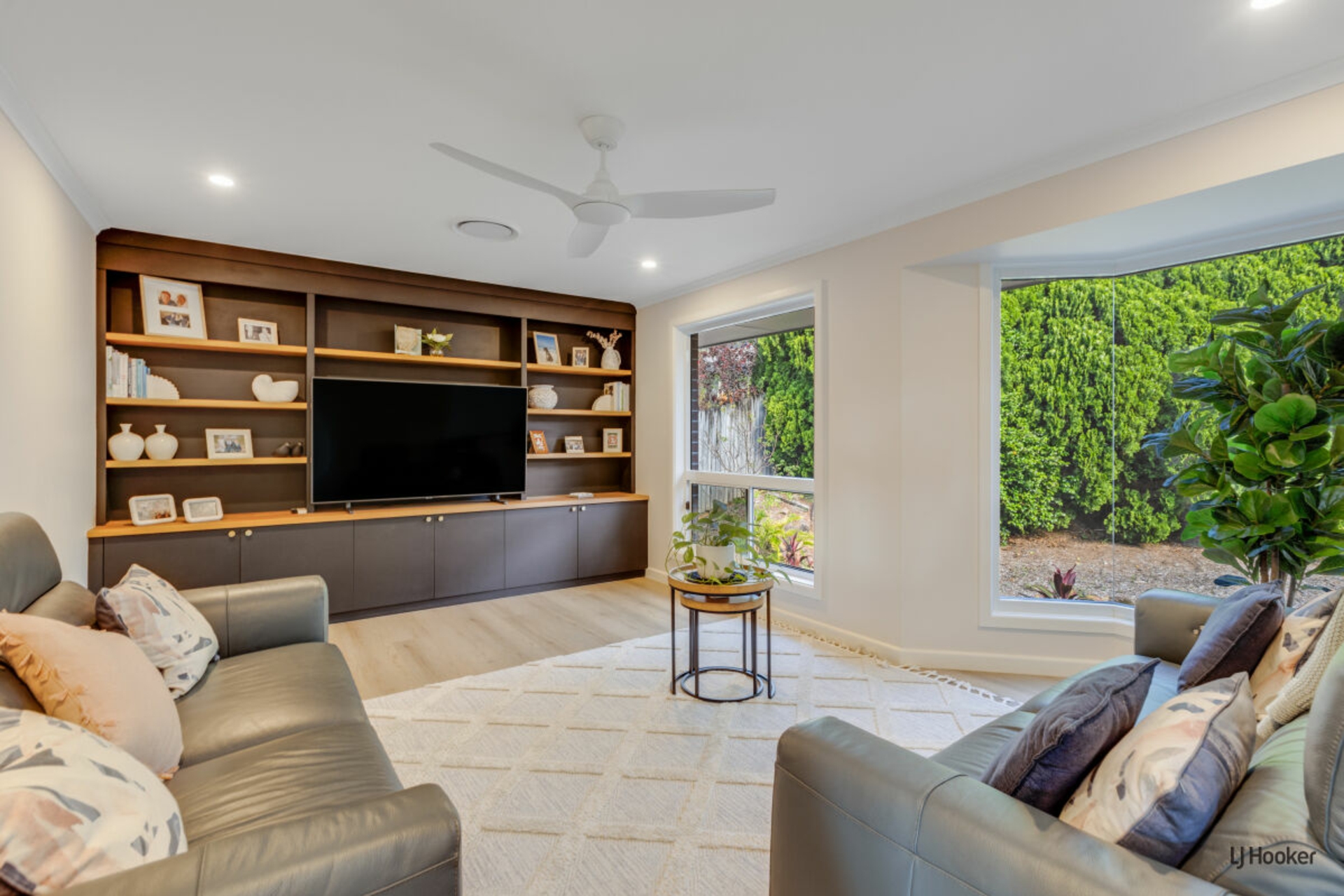 Step inside to discover a flexible floorplan offering five bedrooms, three bathrooms, and multiple living zones-perfect for large families, multigenerational living, or those who desire room to grow. The upper level is the heart of the home, featuring a spacious open-plan living, dining, and kitchen area that flows seamlessly to the oversized covered deck complete with alfresco blinds. This all-weather space is ideal for entertaining, relaxing, or watching the kids play in the pool below.