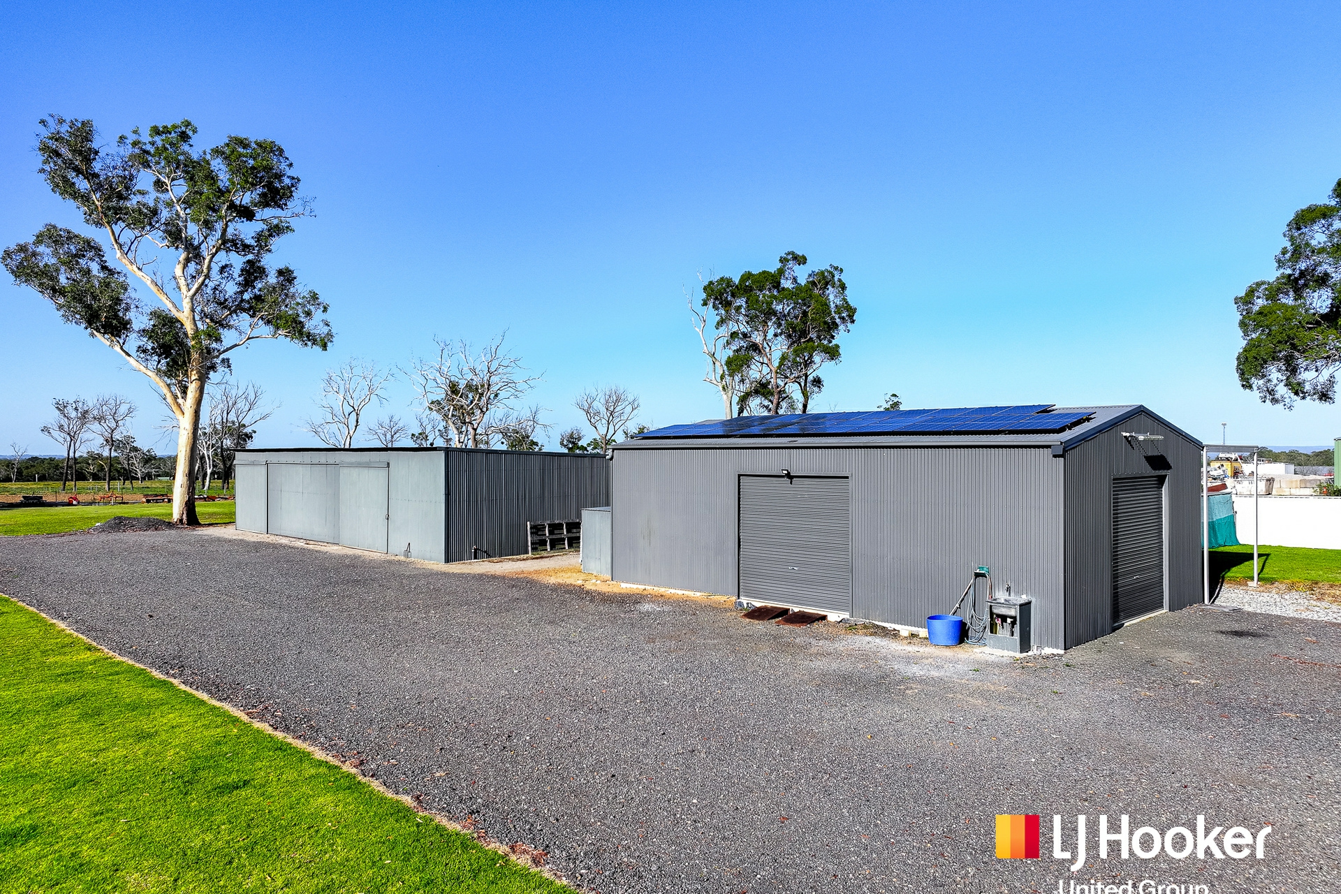 For those needing serious space to work or store, the large shed with three-phase power, 13kW solar system and water tank adds real value, alongside a double garage and ample parking for multiple vehicles with 25kW 3 phase battery that runs everything.