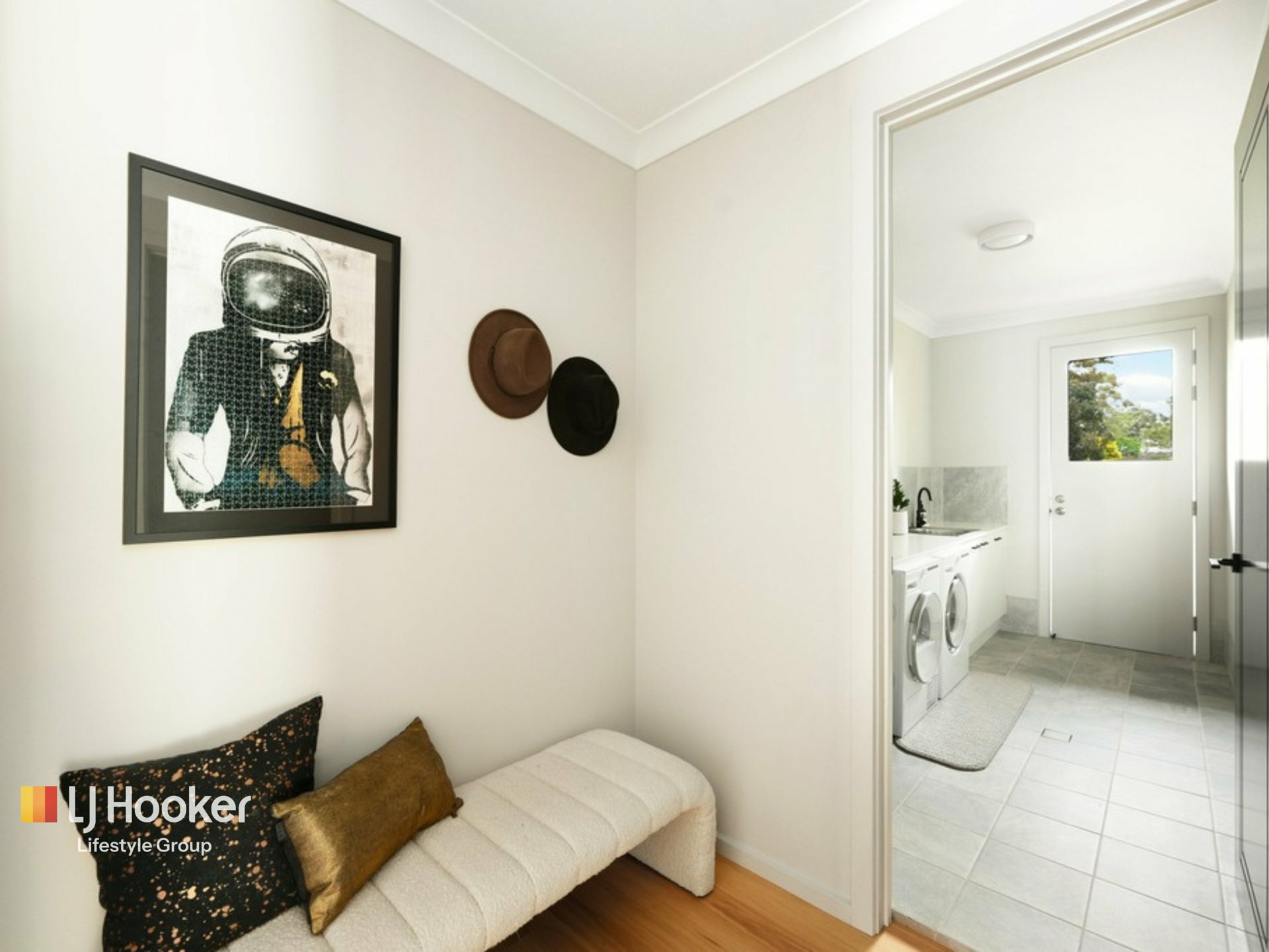 Functionality meets elegance with a large fitted-out laundry featuring stone benchtops, a convenient drop zone off the garage, and plenty of storage throughout, making everyday living effortlessly organised.