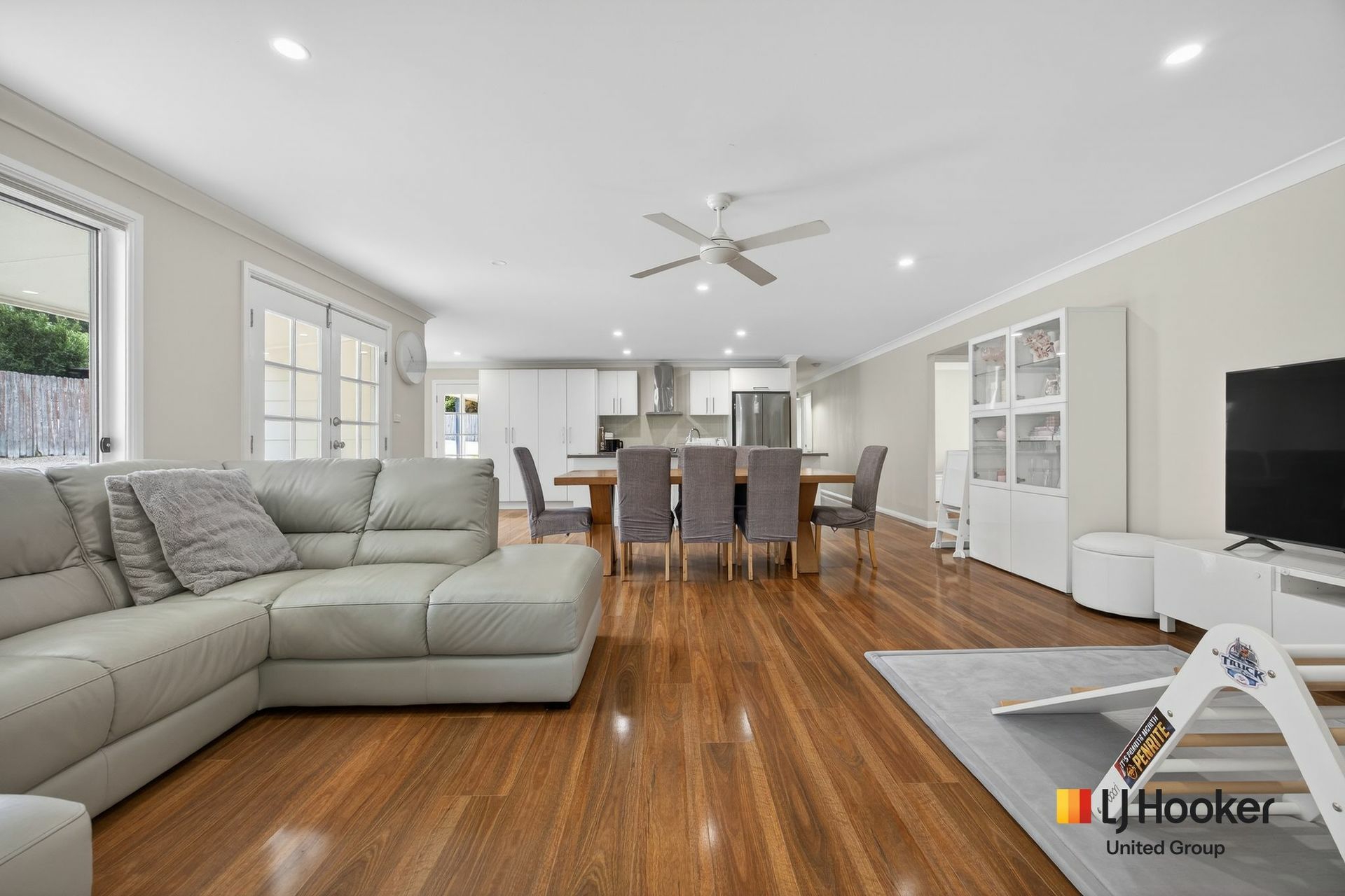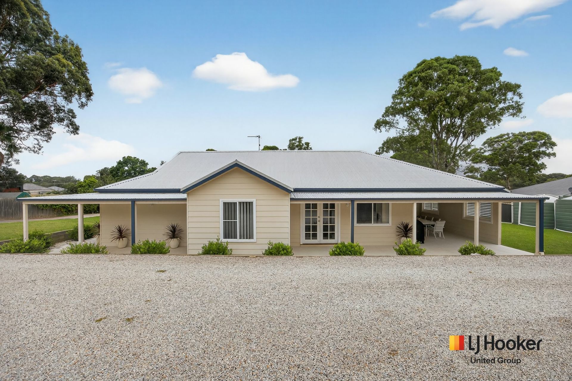 Outside, a wide, usable backyard provides the freedom that comes with a larger residential block. A detached double garage with electric roller doors and an expansive concrete driveway provide secure parking and ample driveway space for extra vehicles, trailers, etc.