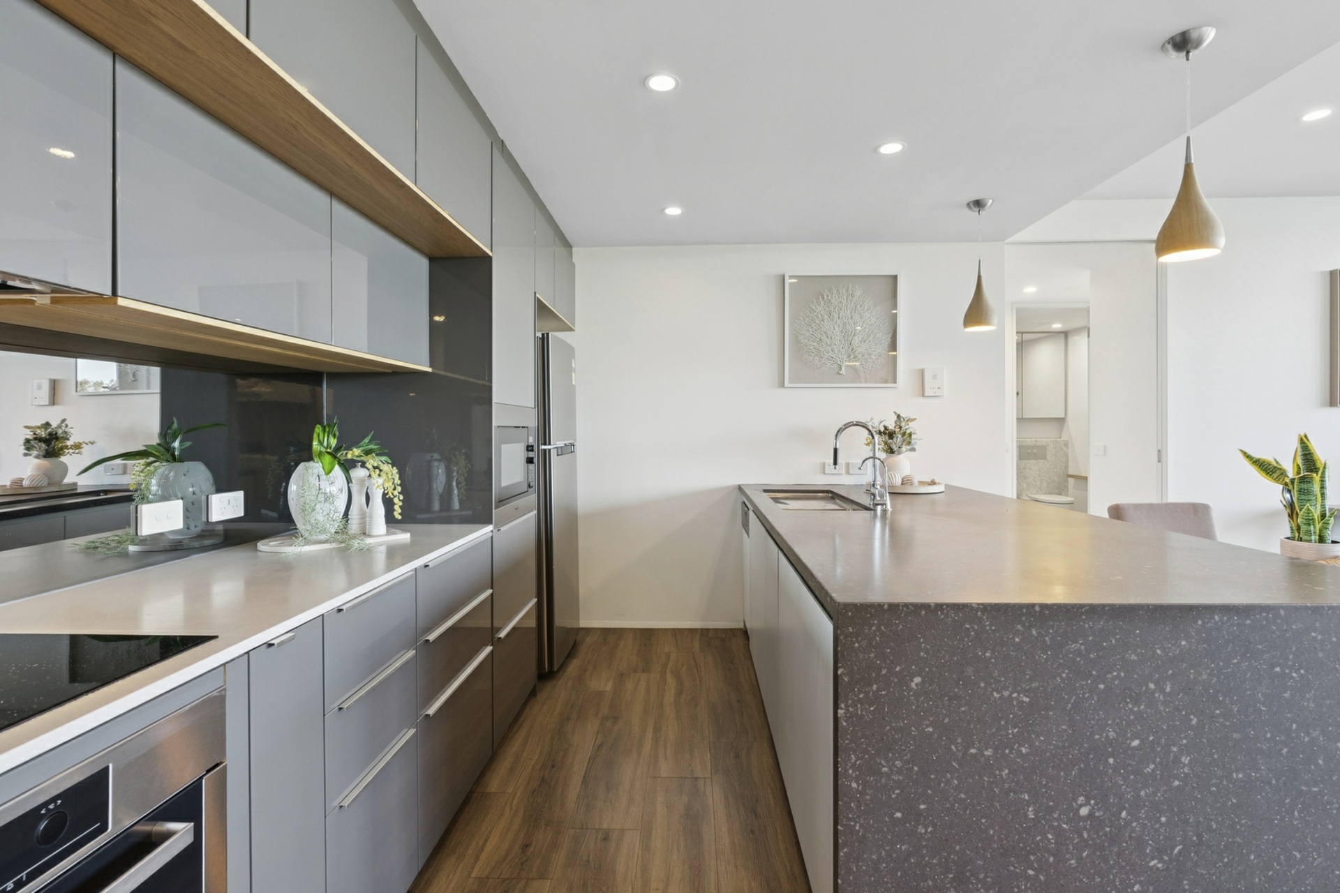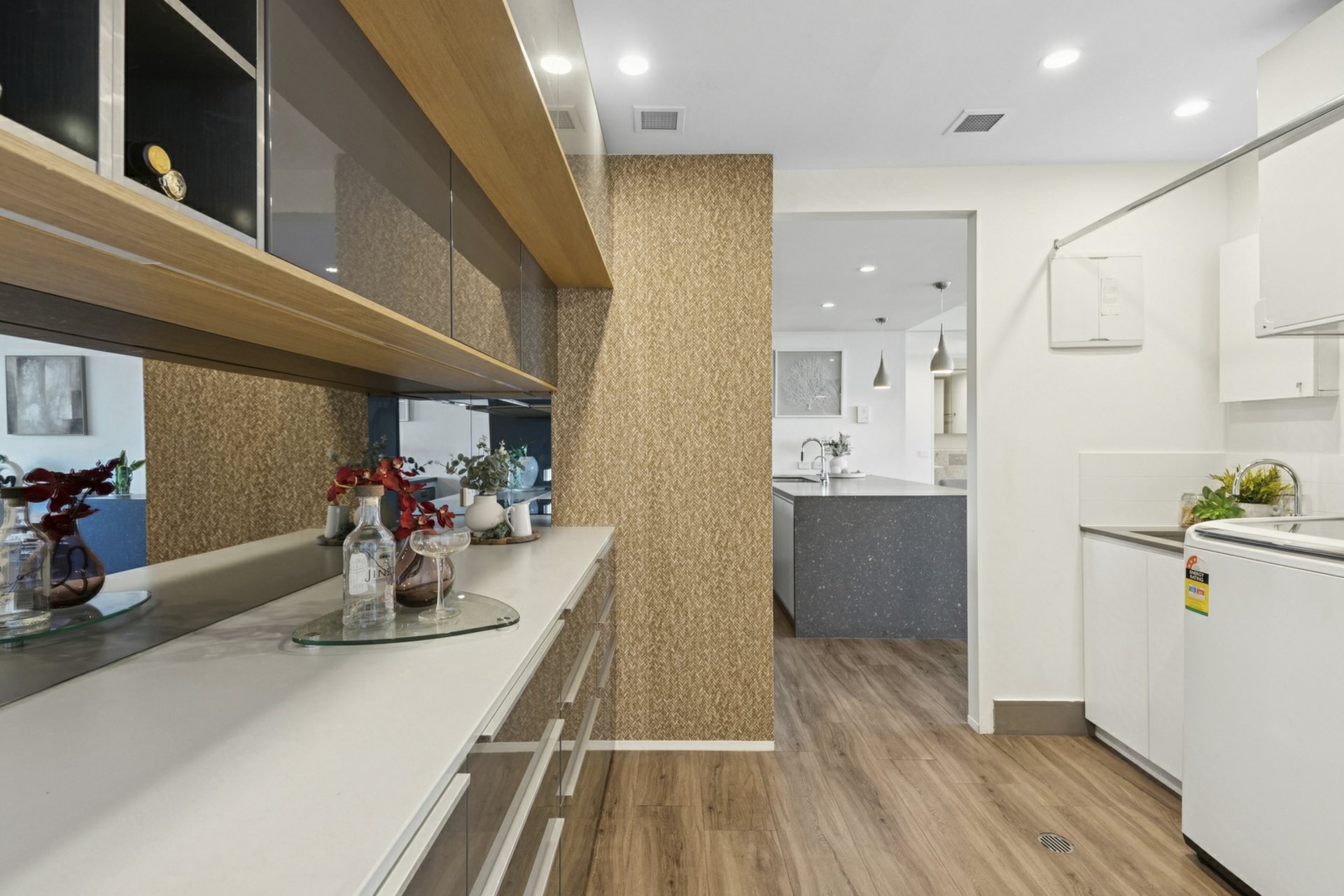 - Kitchen with excellent storage, quality appliances and stone benchtops plus customised walk in pantry/laundry