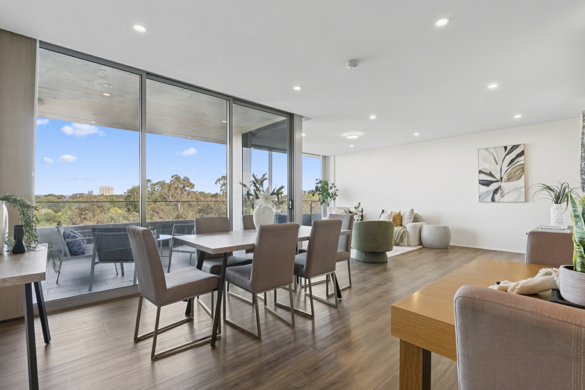 - Open-plan living and dining