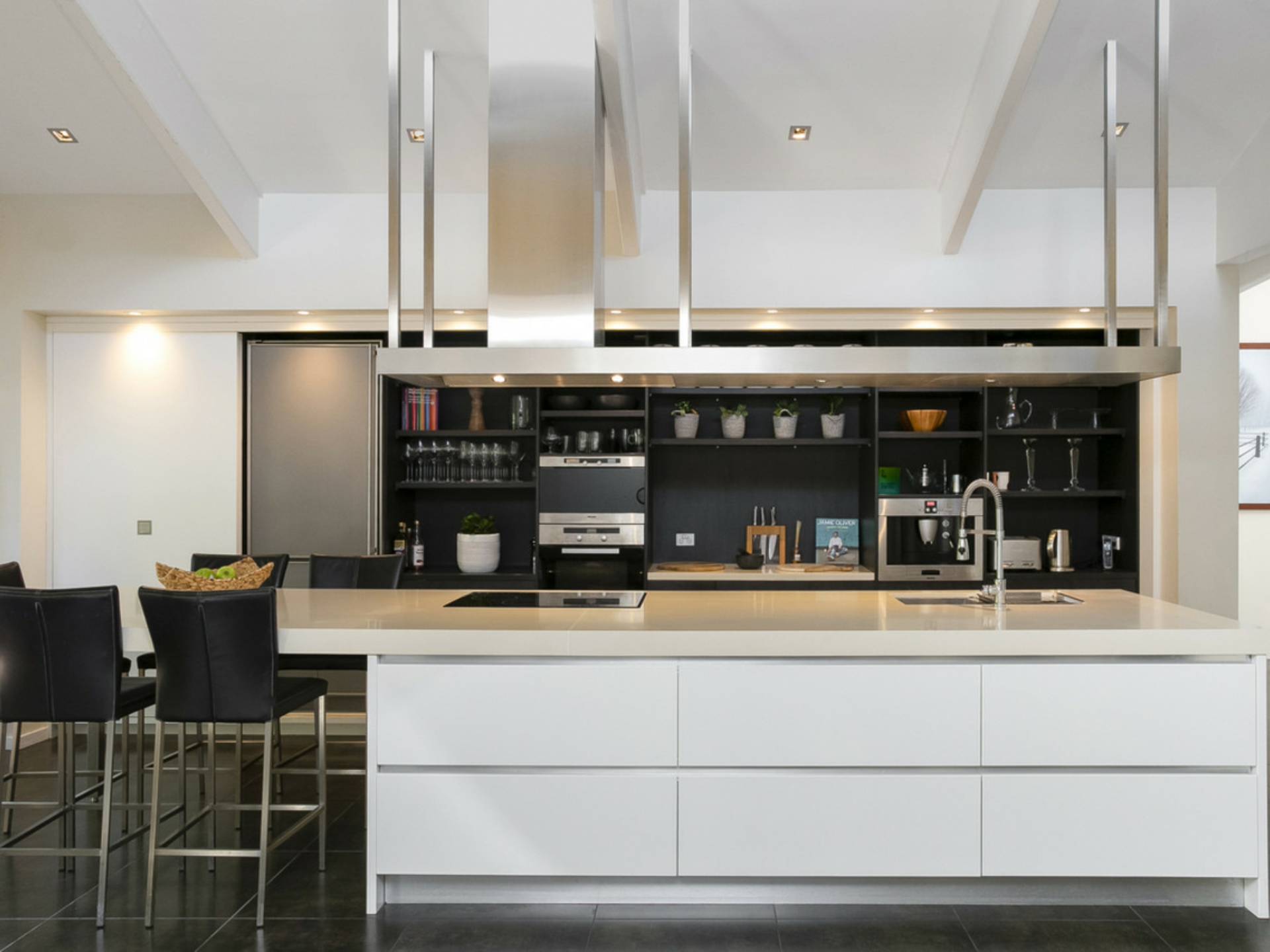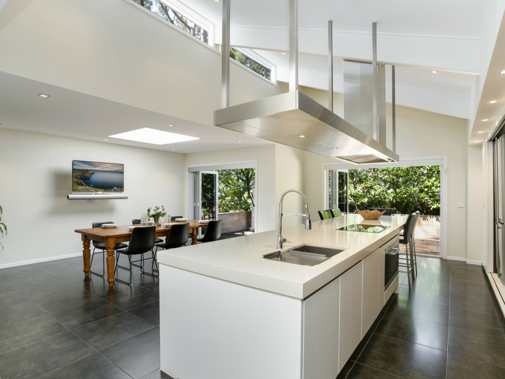 • State-of-the-art near commercial size kitchen equipped with Miele oven, steamer and microwave, Bosch coffee machine, SMEG induction cooktop and large island breakfast bar