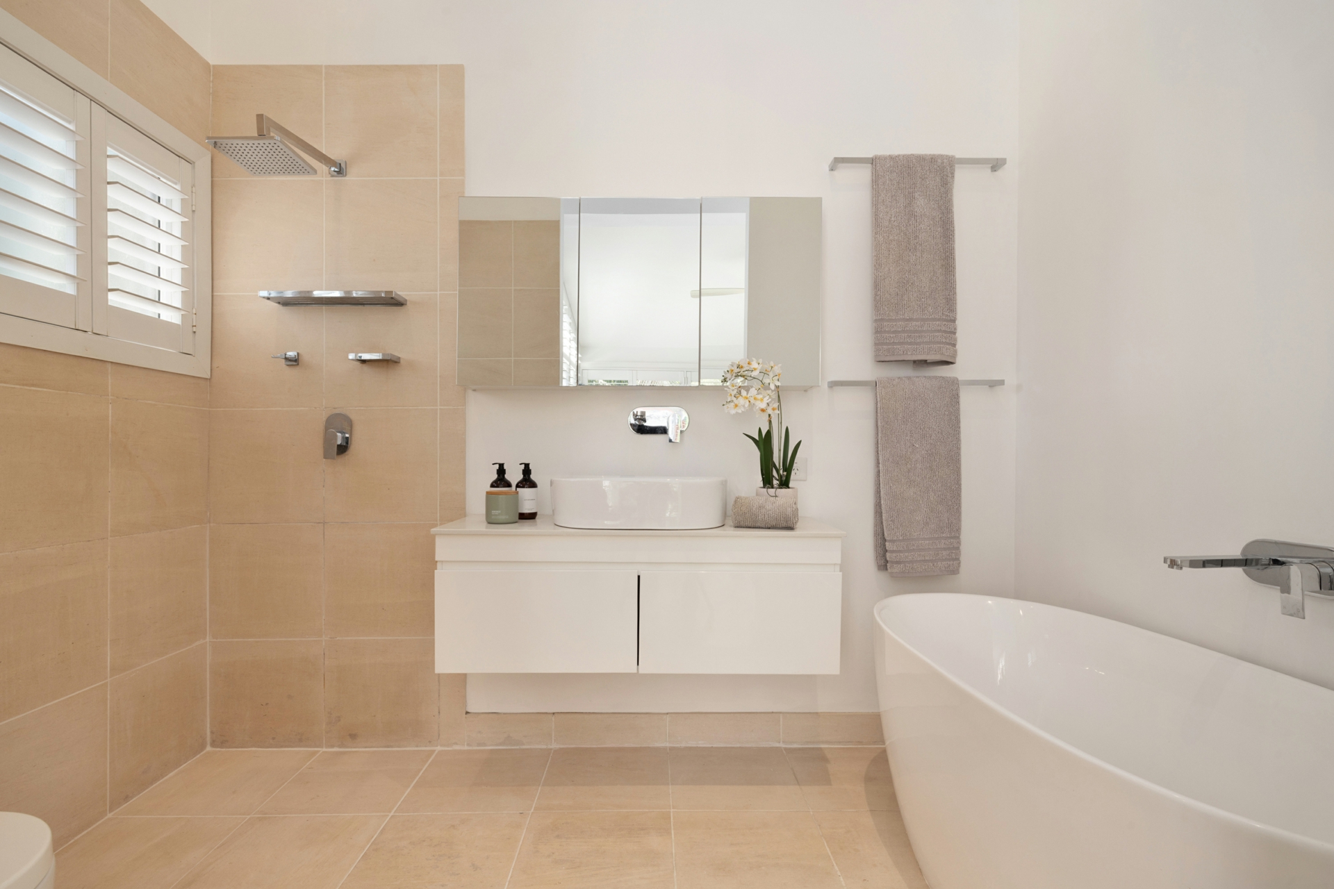 • Plantation shutters, cathedral ceilings and ducted air conditioning enhance comfort and style throughout