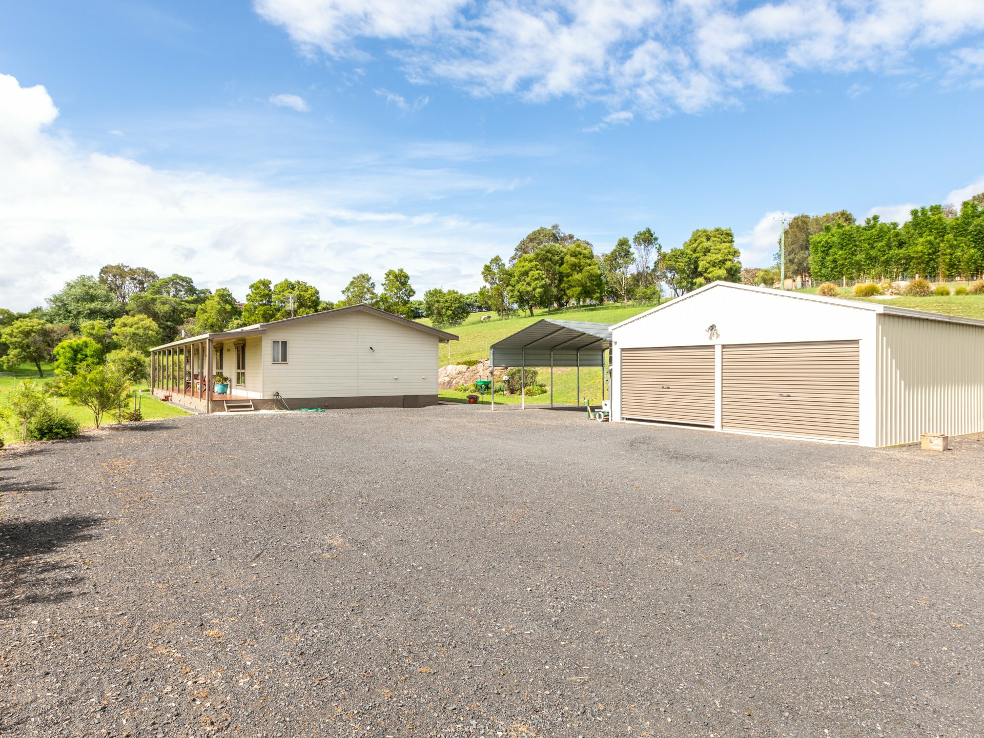 On arrival, you’re immediately taken by the neat presentation of the entire property. A long driveway lands you at the large parking area, ideal for manoeuvring trailers or providing ample space for family and visitors' vehicles.